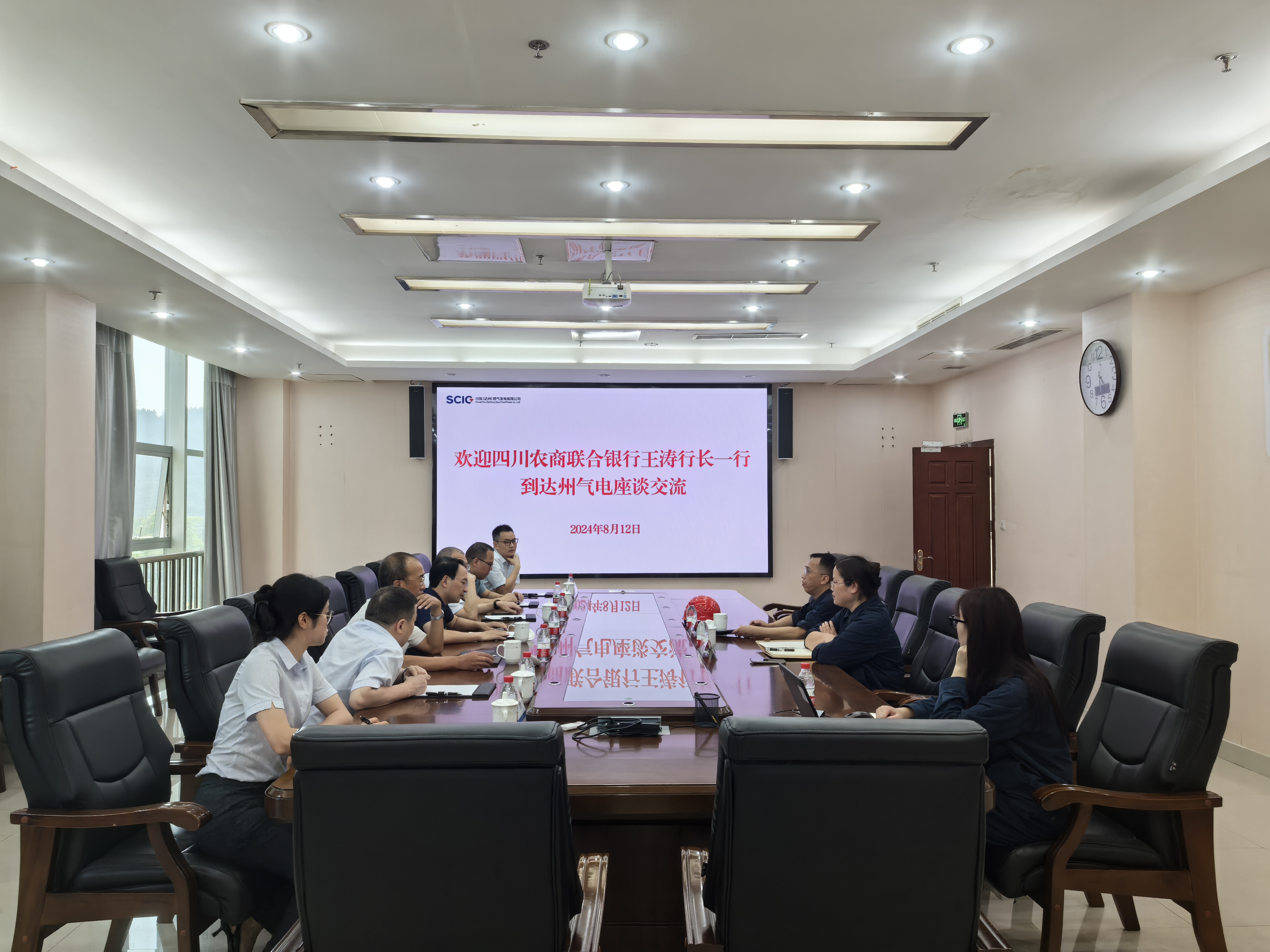 8月12日,四川农商联合银行党委副书记、行长王涛一行到达州气电调研生产经营、项目建设等情况。达州气电党总支书记、总经理蔡宏陪同。