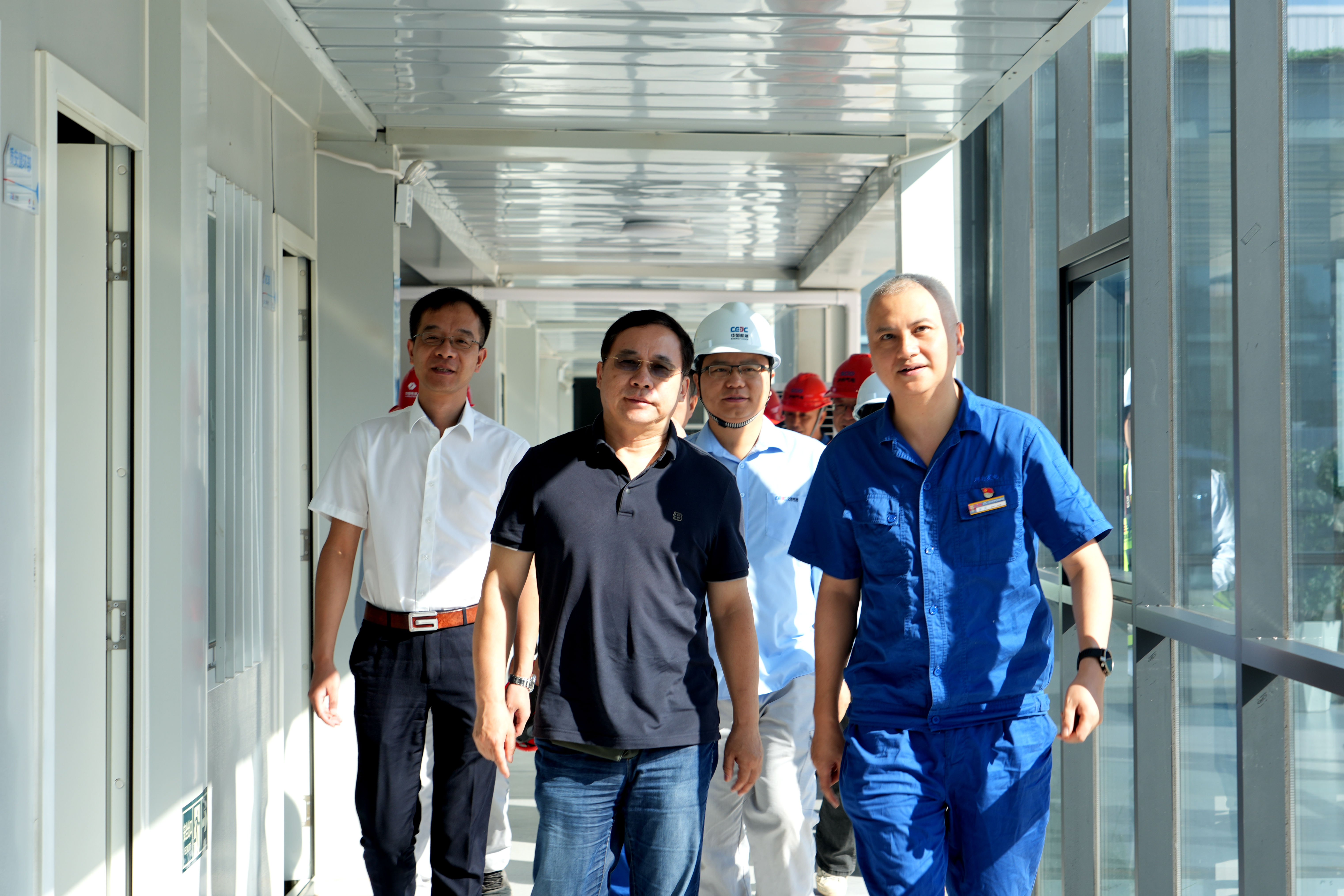 王怀林一行深入川投泸州天然气发电项目施工现场,参观项目智慧工地信息中心,实地查看主厂房、冷却塔、余热锅炉等施工区域,详细了解项目主体工程、配套工程建设进度,设备到货、安装情况,安全环保管理、防暑降温措施落实等工作情况。