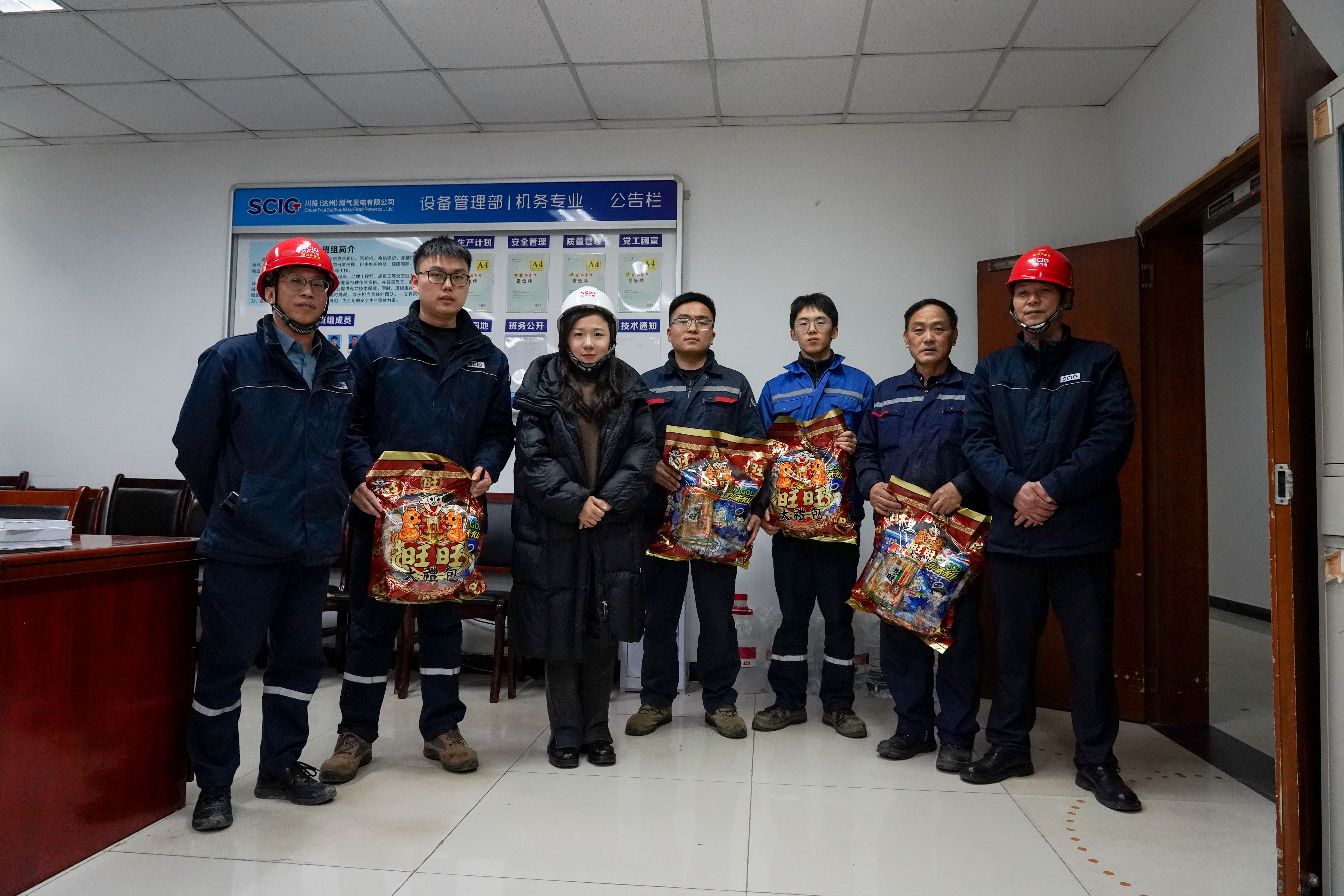 春节临近,为确保春节期间电力稳定供应,切实关怀一线职工,1月15日,川投燃电党委副书记、职工董事、工会主席包婷婷带队深入达州气电生产一线,开展春节走访慰问活动。达州气电党总支书记、总经理蔡宏,党总支委员、副总经理管立,副总经理孙勇,党总支委员、职工董事、工会主席李勇及相关部门负责同志陪同。