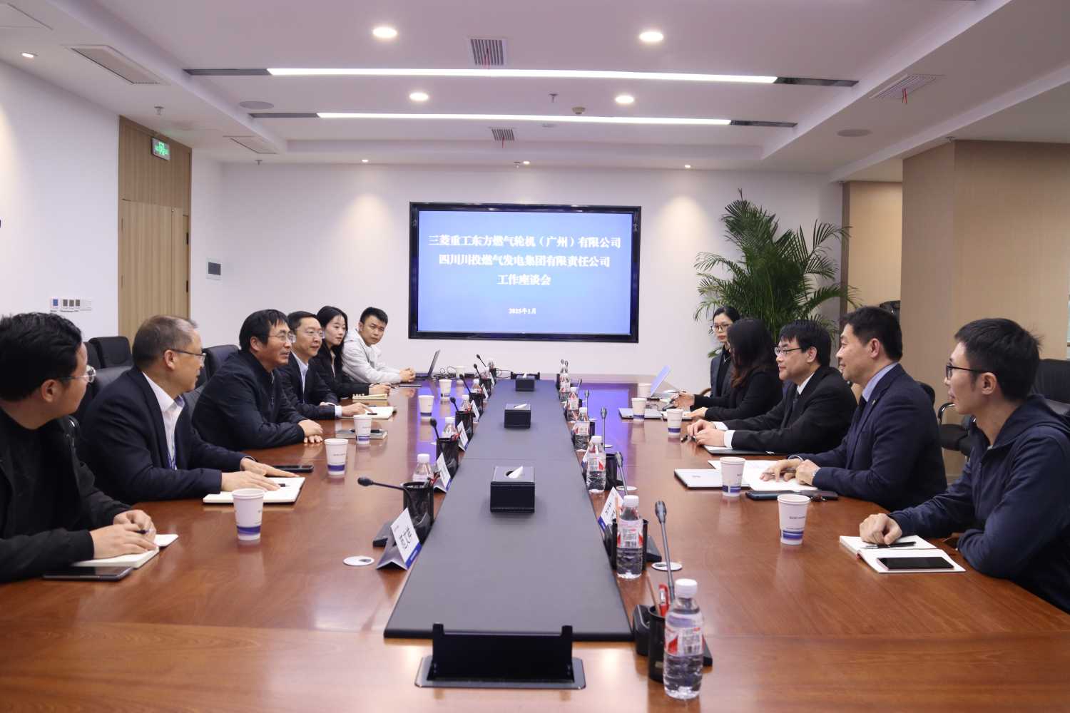 三菱动力售后服务部部长谷雨、广州JV公司售后服务部营业科执行系系长刘晓蓉、工程科售后工程师武林、营业科商务经理林晓旭;川投燃电经营管理部(安全环保部)副部长朱一粟、战略发展部范文祥、供应链公司何亮参加座谈。
