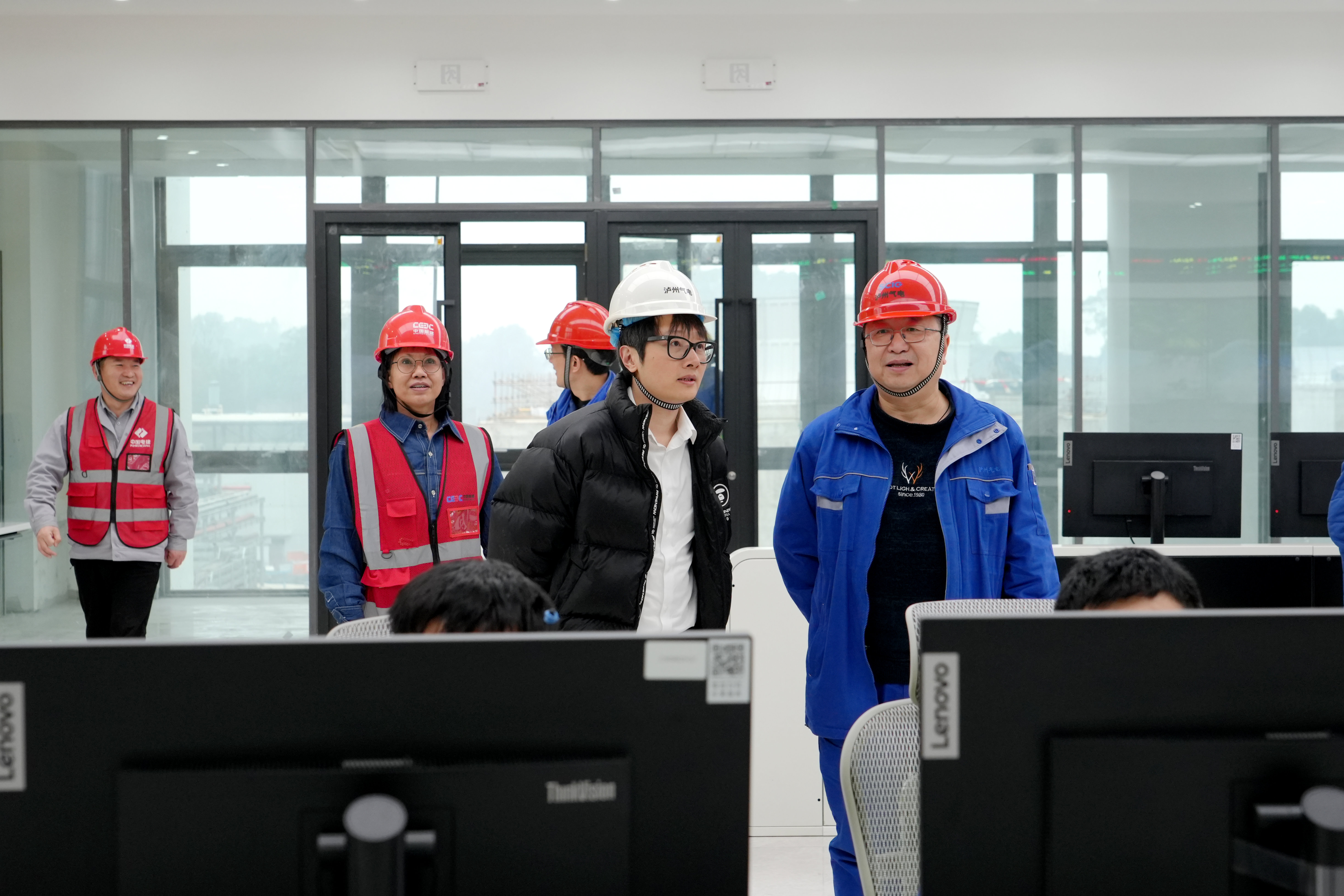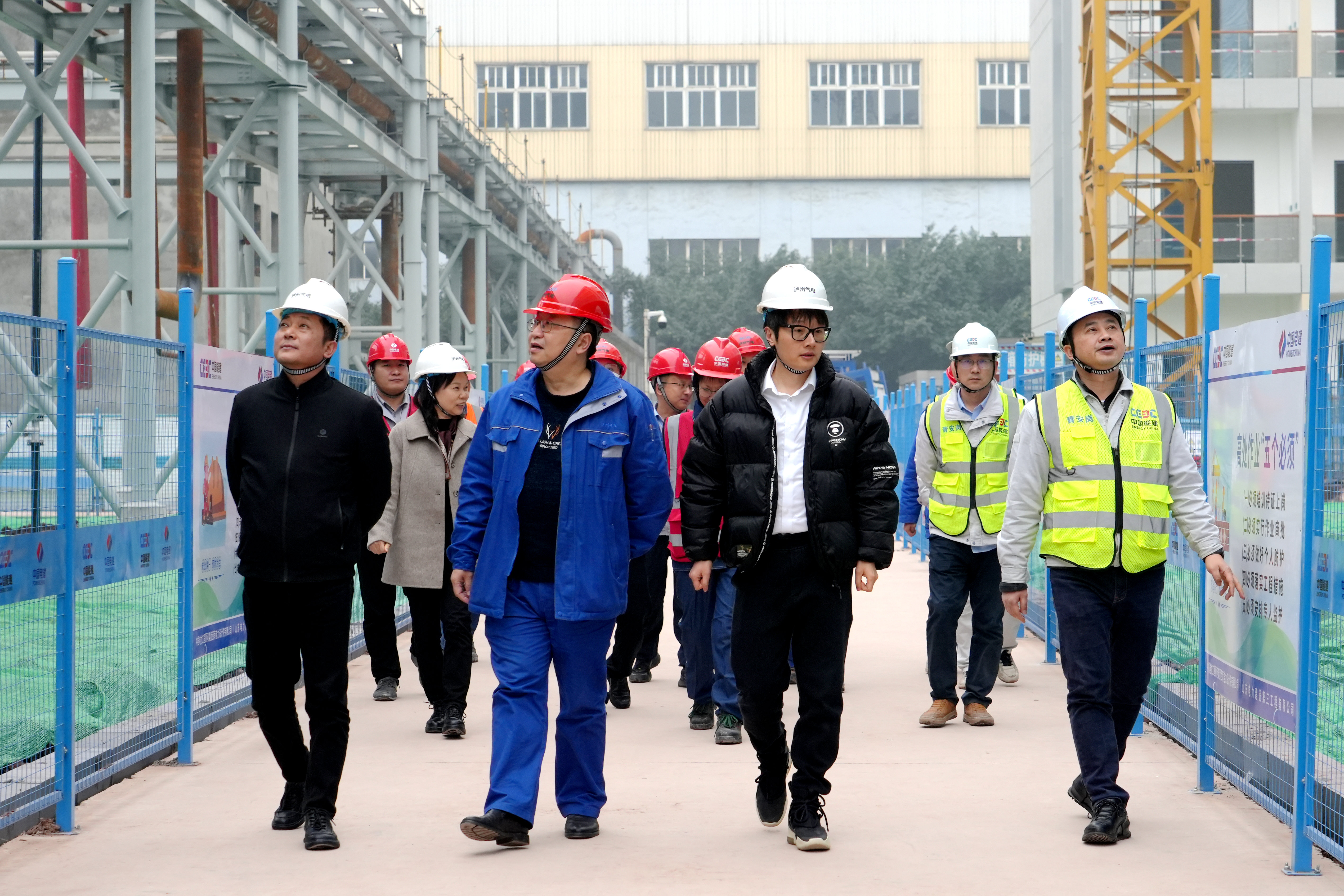 辛力波一行在泸州气电副总经理、工会主席李明尧的陪同下实地察看了川投泸州天然气发电项目主厂房、生产行政综合楼、员工备班楼等施工区域,参观了项目智慧工地信息中心,详细了解项目建设进度、设备供货、施工计划等情况,对现场安全措施落实和节前安全环保工作开展情况进行了检查。