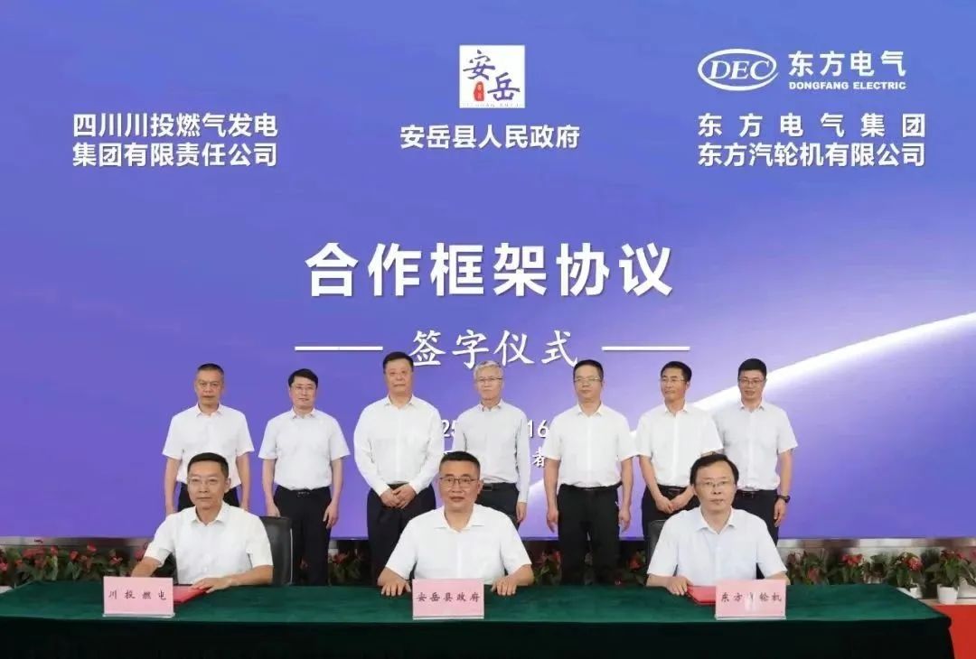 6月16日,四川能源发展集团所属川投燃电与安岳县人民政府、东方汽轮机公司签署三方合作框架协议,共同推进重型燃气轮机自主研制与示范应用。资阳市人民政府副市长李发刚,东方电气集团总经理、党组副书记张彦军,党组成员、副总经理李建华,四川能源发展集团党委委员、副董事长李文志出席签字仪式。