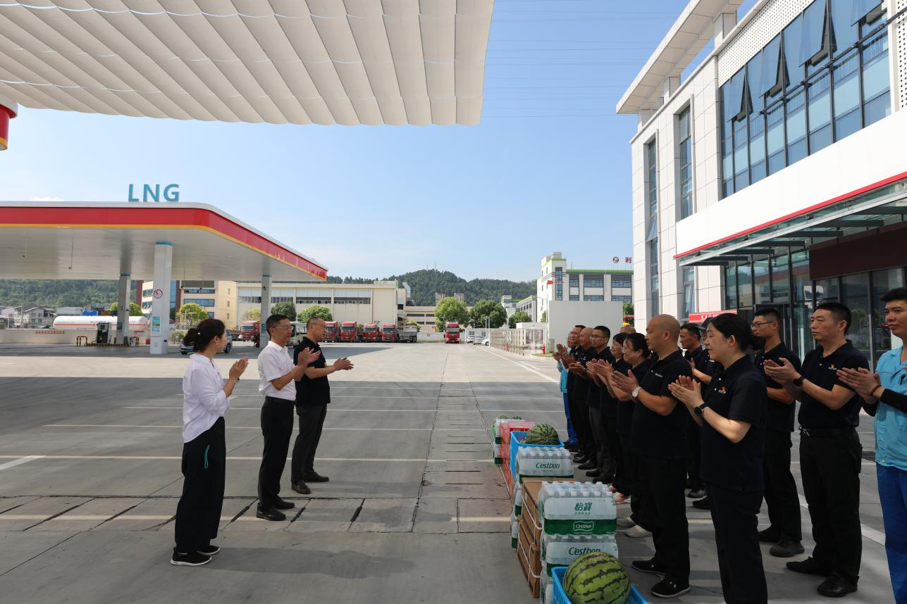 7月4日,川投燃电党委副书记、总经理邓锐率队前往宏源气司经开区油气合建站开展“送清凉”慰问活动,为坚守在高温一线的员工送去关怀与清凉。川投燃电总工程师(技术总监),宏源气司党委书记、董事长、总经理李旭东陪同慰问。