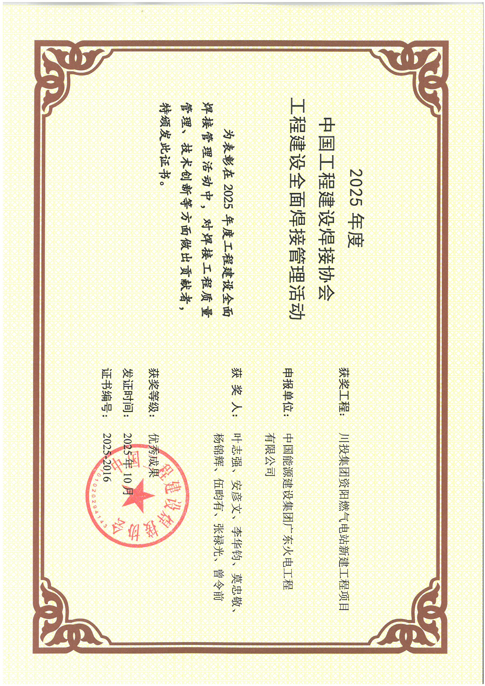 在发电量取得历史性的突破的同时,川投燃电所属各气电公司和个人也迎来了荣誉表彰的“大丰收”:凭借项目建设的卓越成就与突出贡献,泸州气电荣获由泸州市市委、泸州市人民政府颁发的“2025年项目攻坚先进集体”称号,公司工程技术部负责人李阳同志获评“2025年项目攻坚先进个人”。资阳气电依托健全的安全管理体系、规范的作业流程和“零事故”安全管理业绩,顺利通过电力安全生产标准化评审获得电力安全生产标准化一级企业证书;公司还成功荣获中国工程建设焊接协会颁发的 “工程建设全面焊接管理活动优秀成果奖”,成为电力工程领域焊接管理标准化、精细化的标杆案例。资阳气电员工陈阵凭借在电厂再生水回用方面的扎实工作与显著成效,荣获水利部颁发的“中国节水先进个人”称号,体现了公司在节水减排与可持续发展方面的积极实践与行业认可。
