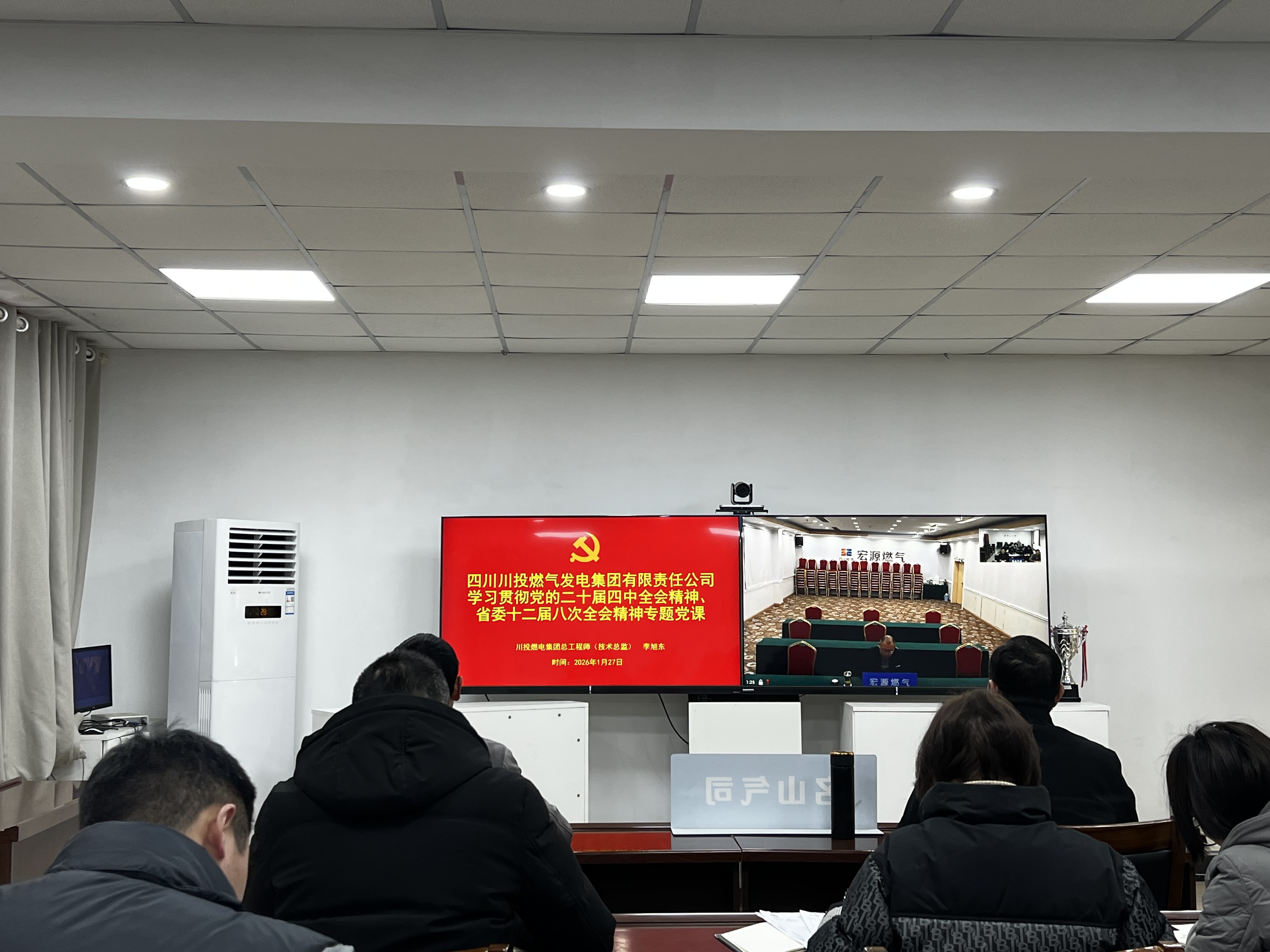 为深入学习贯彻党的二十届四中全会和省委十二届八次全会精神,1月27日,名山川燃组织召开专题学习会。会议邀请川投燃电总工程师(技术总监)李旭东同志以视频连线形式作宣讲辅导,公司中层及以上管理人员、党员代表共11人参加会议。