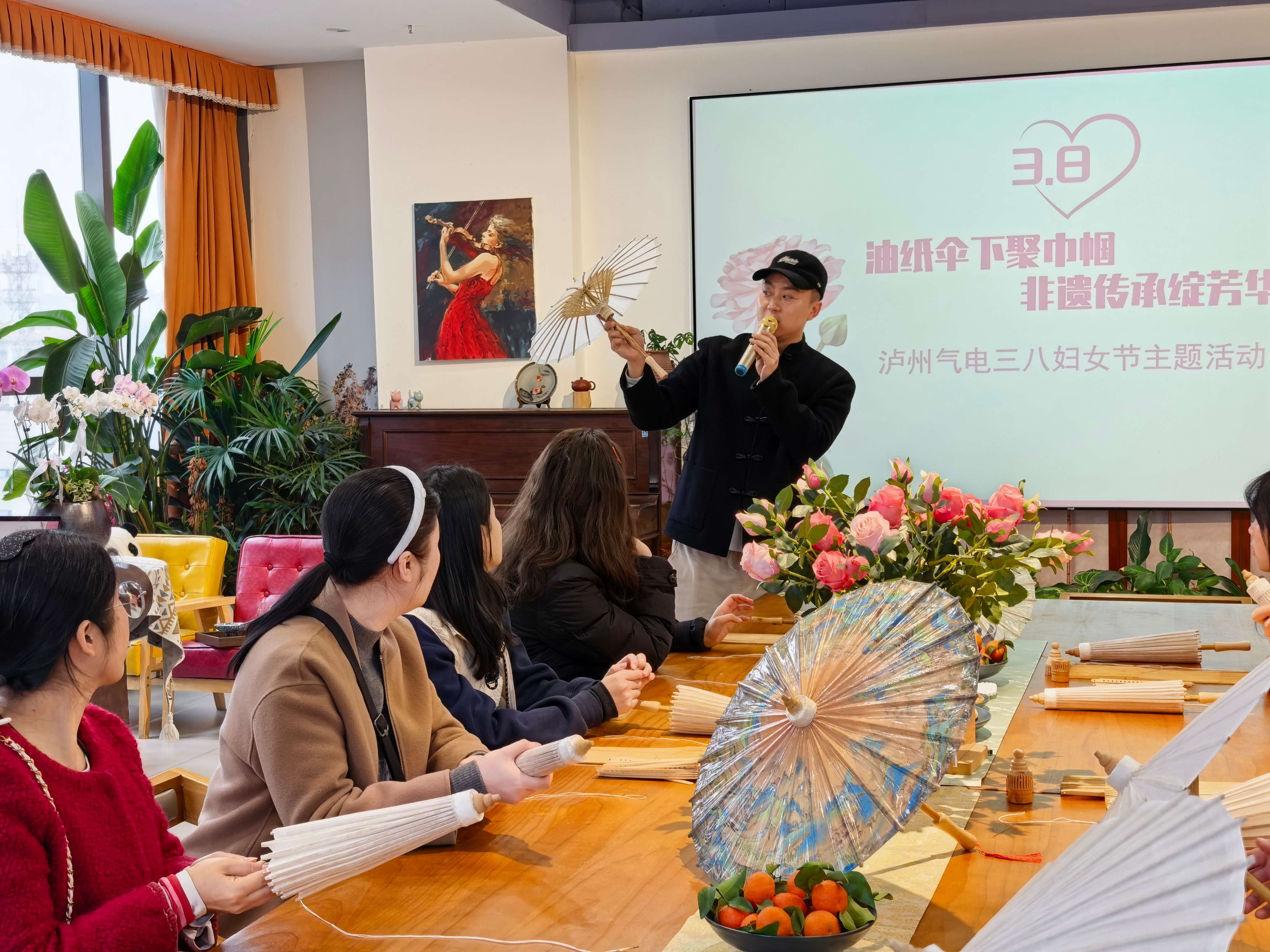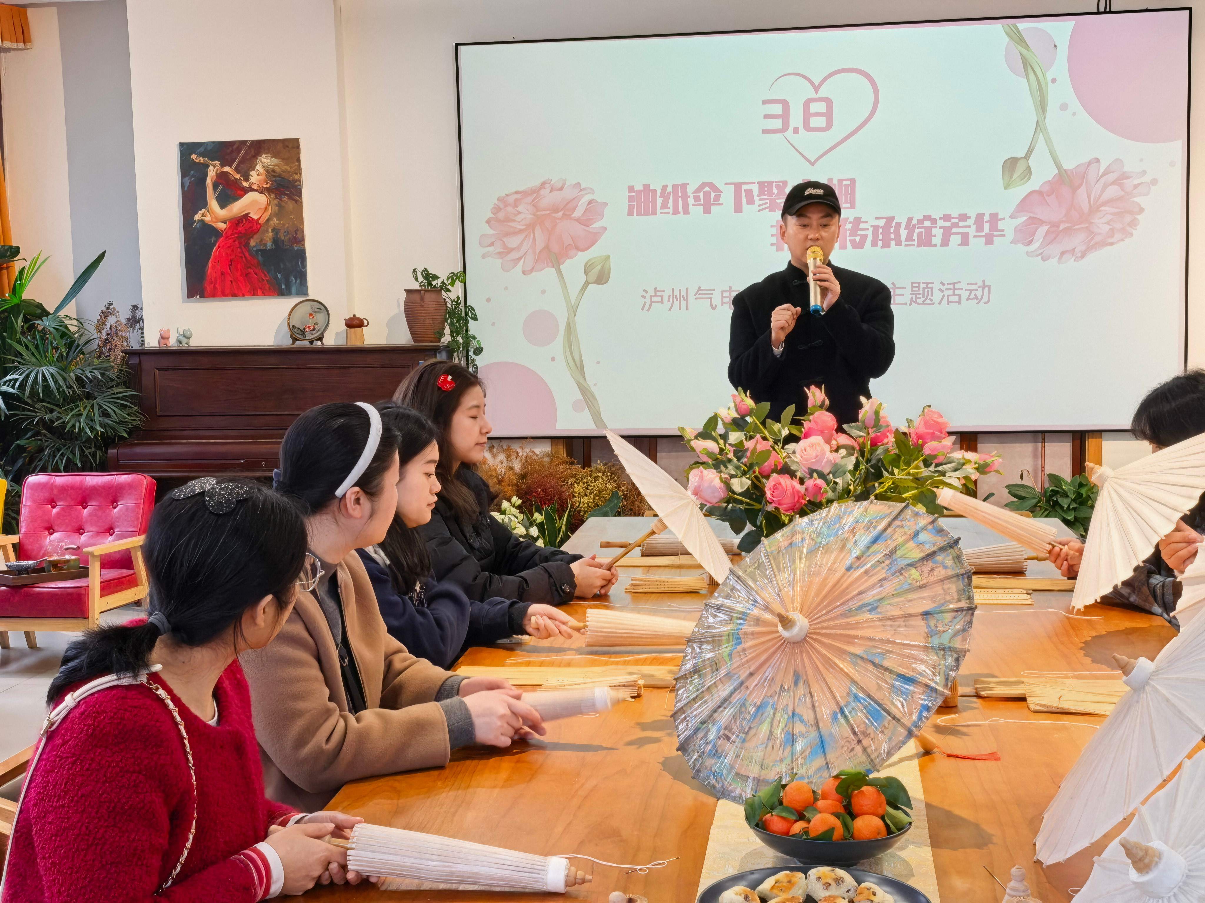 在泸州文化传承馆,泸州气电工会组织的泸州油纸伞制作活动生动开展。女职工围坐案前,正专心致志地在油纸伞上挥毫泼墨。在非遗传承人指导下,大家亲手绘制伞面、学习传统工艺,在欢声笑语中感受传统文化魅力,绘就美好期许。