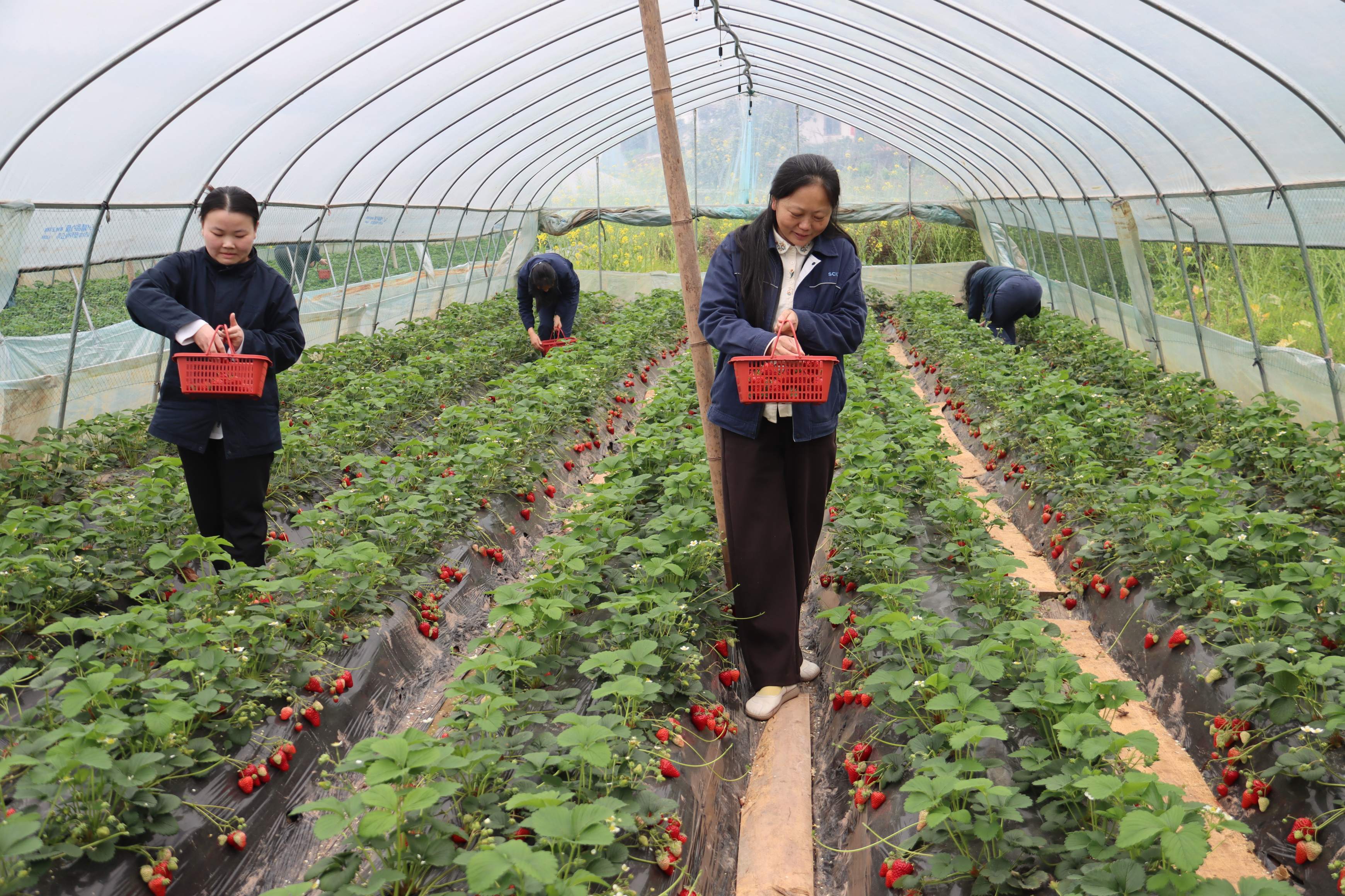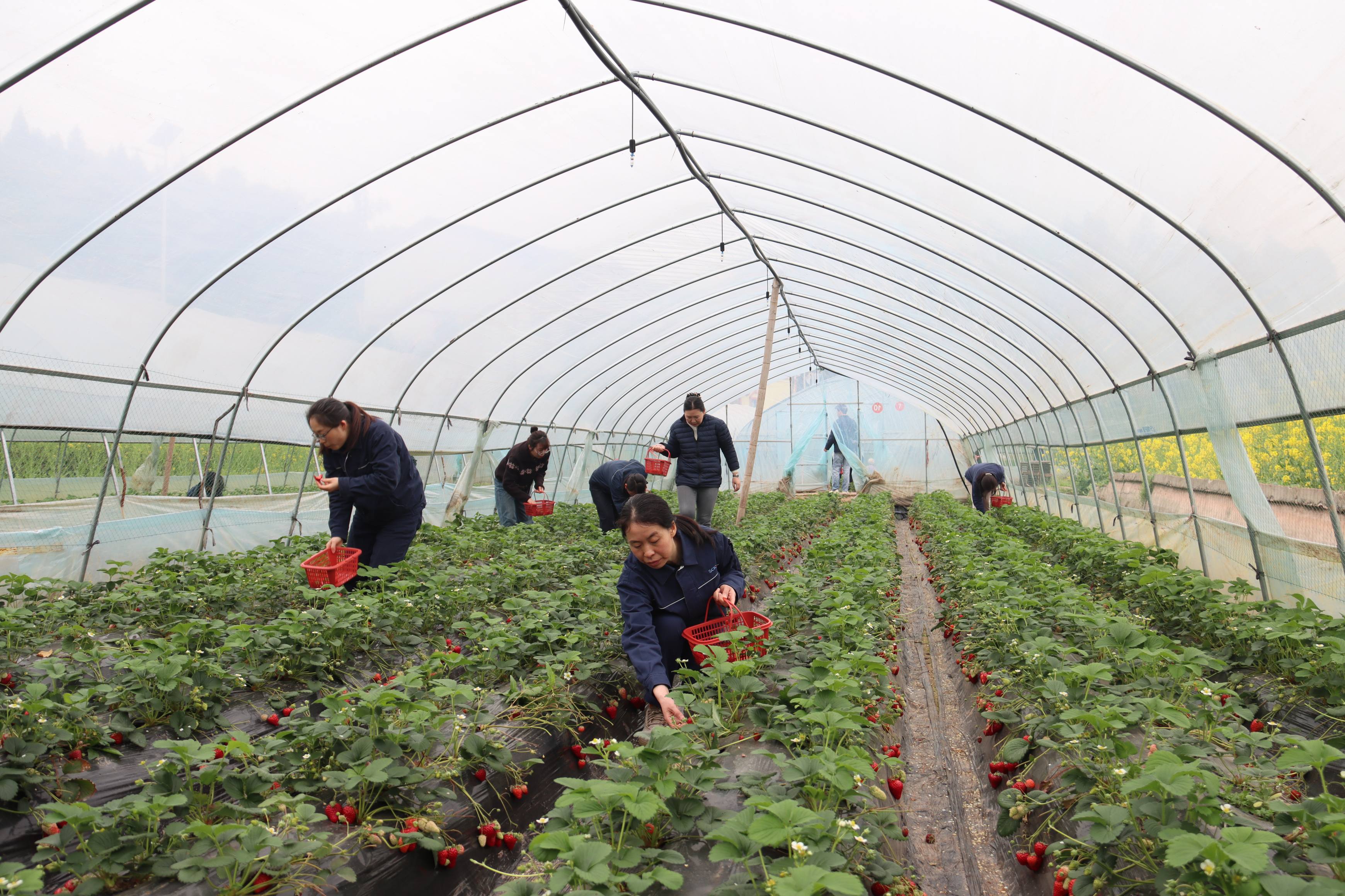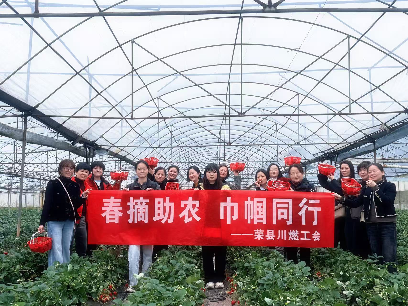 春日暖阳下,资阳气电工会、荣县川燃工会分别组织女职工走进生态草莓园,开启“莓好时光”采摘之旅。大家提着竹篮穿梭田垄间,或俯身采摘,或品尝鲜果,欢声笑语回荡在春风里。红艳艳的草莓掩映在翠绿的藤蔓间,像极了能源女性火热的工作热情与蓬勃的生命力。