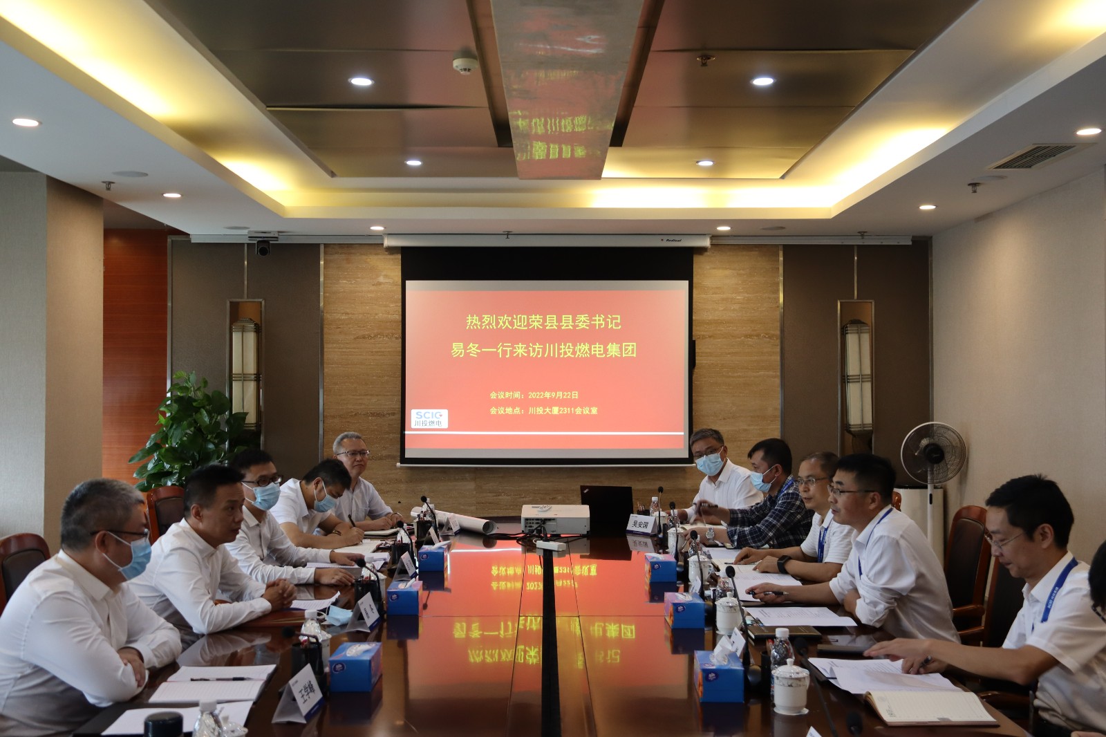 9月22日上午,荣县县委书记易冬一行到川投燃电集团开展交流座谈。川投燃电集团党委书记、董事长姚欣,党委副书记、总经理邓锐出席会议。