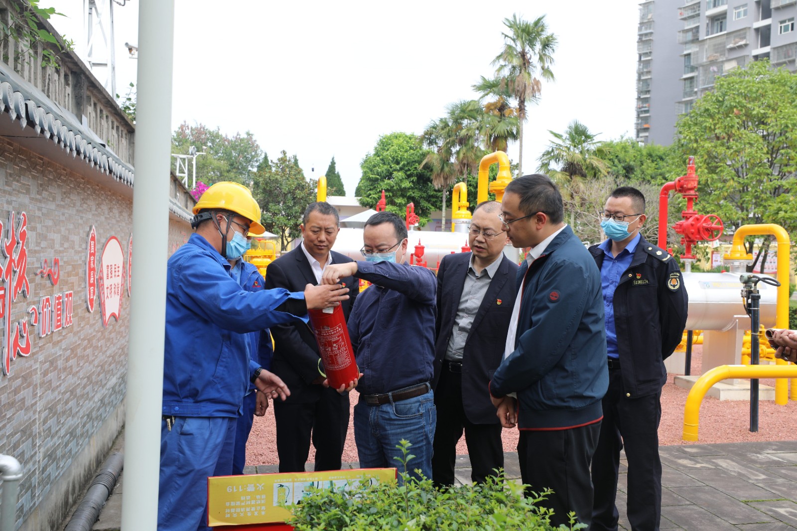 检查组在天然气储配站听取了公司主要负责人李旭东关于天然气保供、安全生产的情况汇报,查看了设施设备运行情况和消防设施状况,要求现场人员要强化应急演练,确保关键时刻处置快、效率高;在安装公司加工厂车间,黄文东查看了管道焊接和开孔工作,了解了城区高层立管安装进度,叮嘱相关人员既要做好疫情防护,也要做好劳动个人防护,保证施工安全;在CNG加油加气站,黄文东了解了经营情况、成品油储备、疫情防控措施落实情况,重点查看了储气罐区、压缩机房的设备运行情况、巡更打卡情况、隐患排查治理情况;在防疫物资储运室,查看了防疫物资储备和储存情况;在11楼中会议室,仔细对照《检查表》检查了疫情防控、安全环保、防汛减灾、信访维稳等工作台账资料。