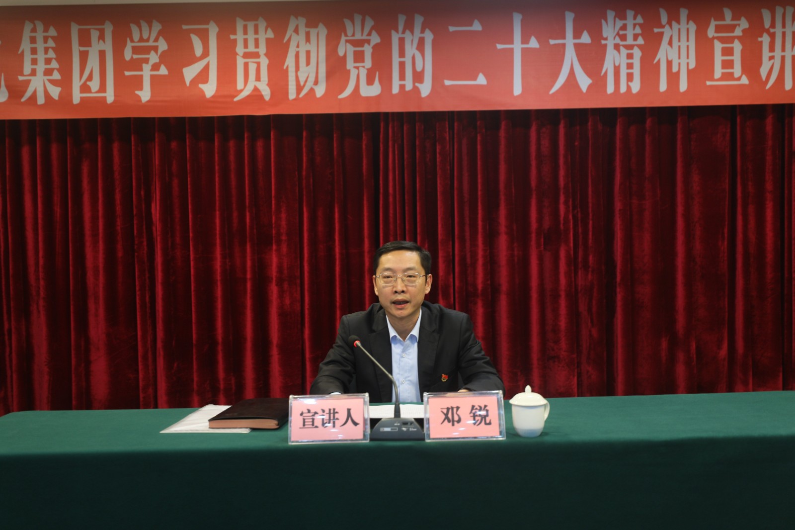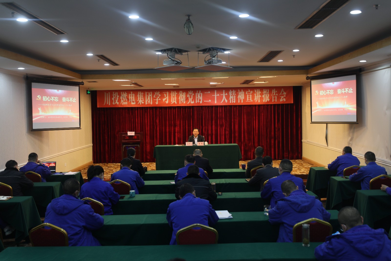 按照《川投燃电学习宣传贯彻党的二十大精神的总体安排》和《关于做好学习贯彻党的二十大精神宣讲工作的方案》要求,2022年12月7日下午,川投燃电党委副书记、总经理邓锐赴所属宏源公司开展川投燃电集团学习贯彻党的二十大精神宣讲报告。宏源公司党委委员、班子成员、中层以上管理人员共计42人参加会议,川投燃电总工程师、宏源公司党委书记、董事长、总经理李旭东主持报告会。