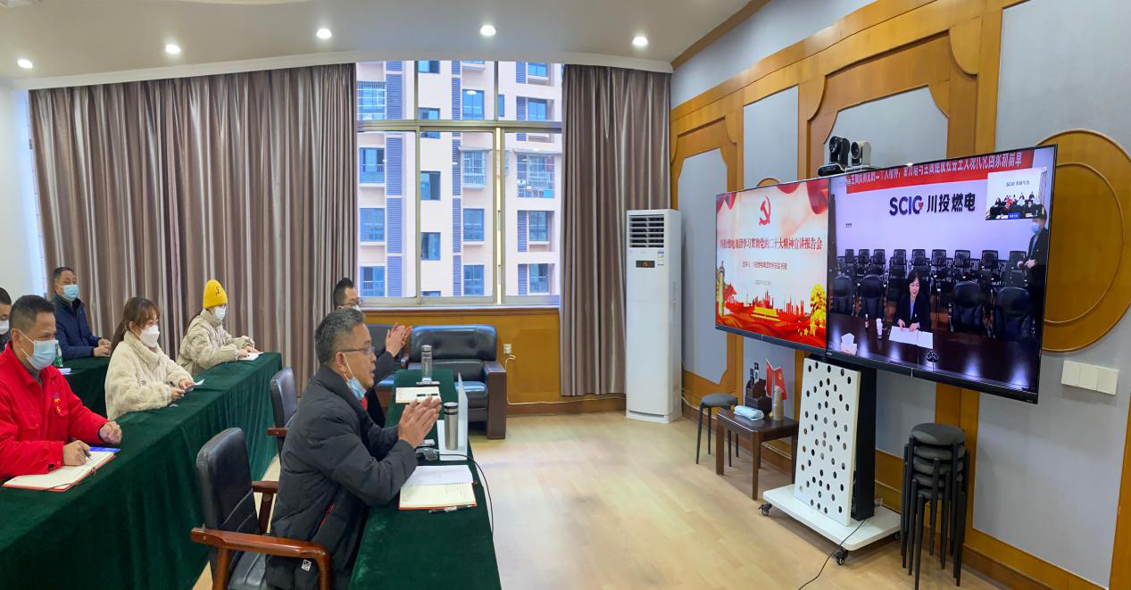 为深入学习宣传贯彻党的二十大精神,切实把川投燃电各级党组织和广大党员干部群众的思想统一到党的二十大精神上来,12月29日下午,川投燃电财务总监祝瑗以视频方式向所属荣县川燃宣讲党的二十大精神。