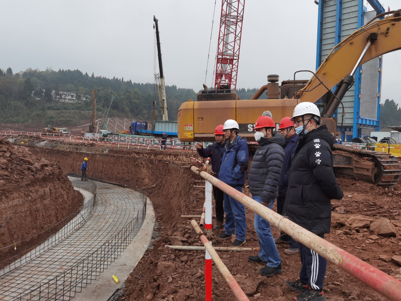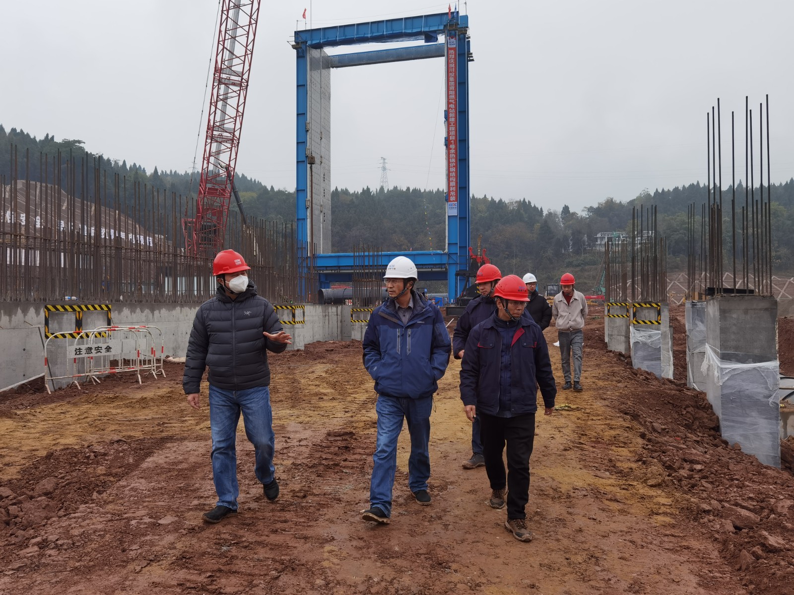 安岳连日来寒风瑟瑟冬雨绵绵,但资阳燃气电站新建工程项目现场一片火热景象,近300名施工建设者冒着寒风细雨用热情和汗水坚守一线。姚欣先后来到主厂房、#1#2余热锅炉、厂前区域、厂外补给水和截洪沟施工现场,察看正在作业的模板拆除、钢架吊装、破桩施工和管道施工,亲切慰问节日奋战在工地的施工建设者,嘱托要保重身体,做好安全生产、防寒保暖等工作。在听取项目建设情况汇报后,姚欣讲到,2022年资阳气电克服了疫情、酷暑、多雨天气等不利因素,项目建设马不停蹄,圆满完成年度建设目标和投资目标,可喜可贺。他表示,资阳燃气电站项目时间紧、任务重,施工难度大,燃电集团将全力支持,积极帮助协调解决项目推进中的难题。他强调,资阳气电和参建单位在抢抓施工进度的同时,一定不忘把安全质量挺在前面,时刻绷紧安全生产这根弦,严格落实安全生产主体责任,坚决守住安全底线。