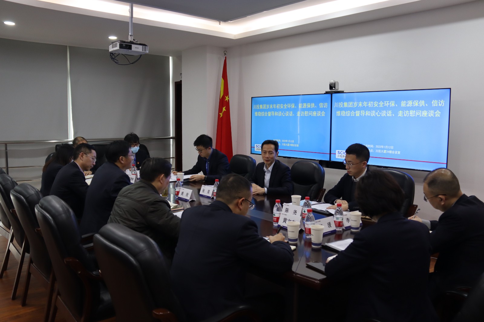 1月12日下午,川投集团副总经理张昊一行到川投燃电本部督导检查安全环保、能源保供及信访维稳工作,并开展领导班子谈心谈话和基层慰问。川投燃电党委书记、董事长姚欣,党委副书记、总经理邓锐及川投燃电领导班子成员陪同检查慰问。