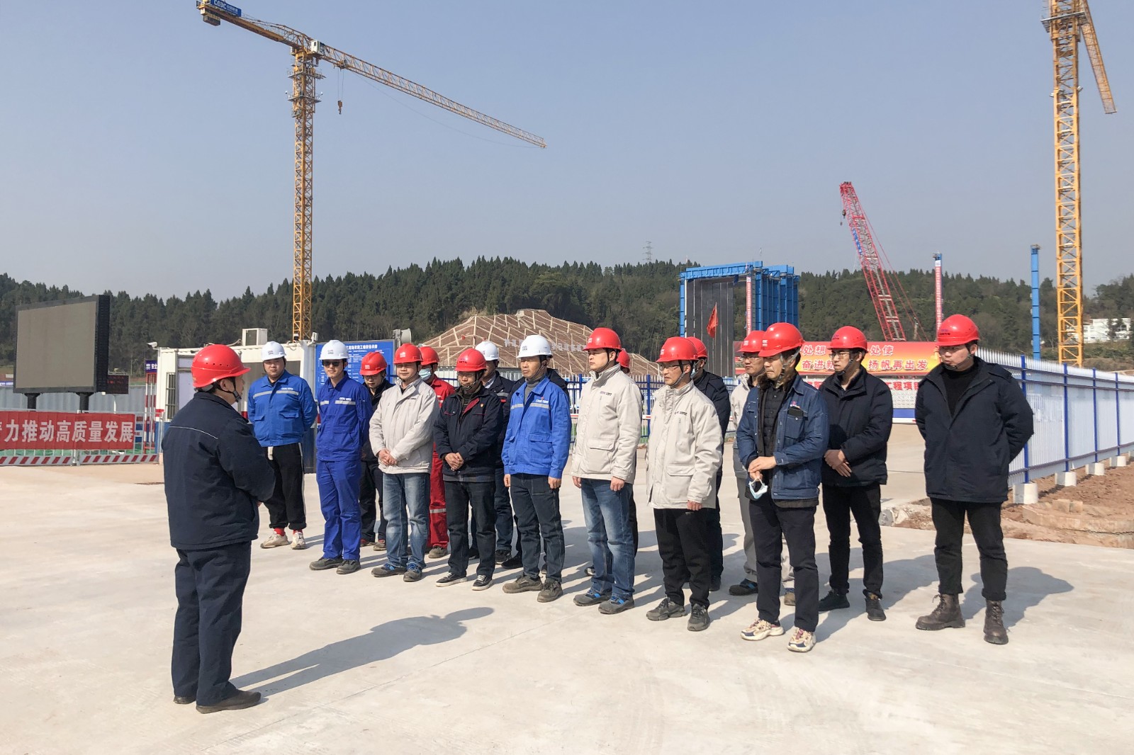 梁红兵一行深入施工现场,详细了解春节期间项目现场值守情况、节后施工人员返岗情况,逐一检查核实复工前的安全教育、技术交底、安全措施等重点工作,确保各项工作落实到位。