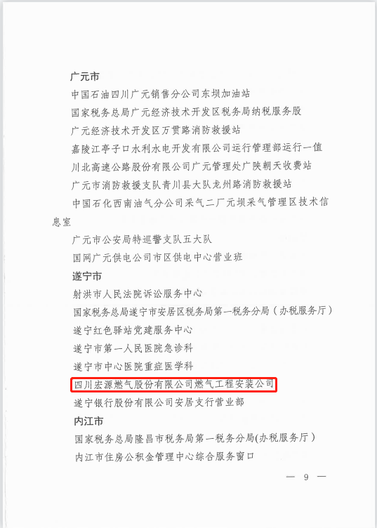 近日,共青团四川省委等18家单位联合发布《关于命名2021-2022年度四川省青年文明号的通知》,川投燃电集团所属宏源气司燃气工程安装公司因“政治素质好、职业道德好、职业技能好、工作作风好、岗位业绩好”,受到团省委肯定,被授予“2021-2022年度四川省青年文明号”称号。
