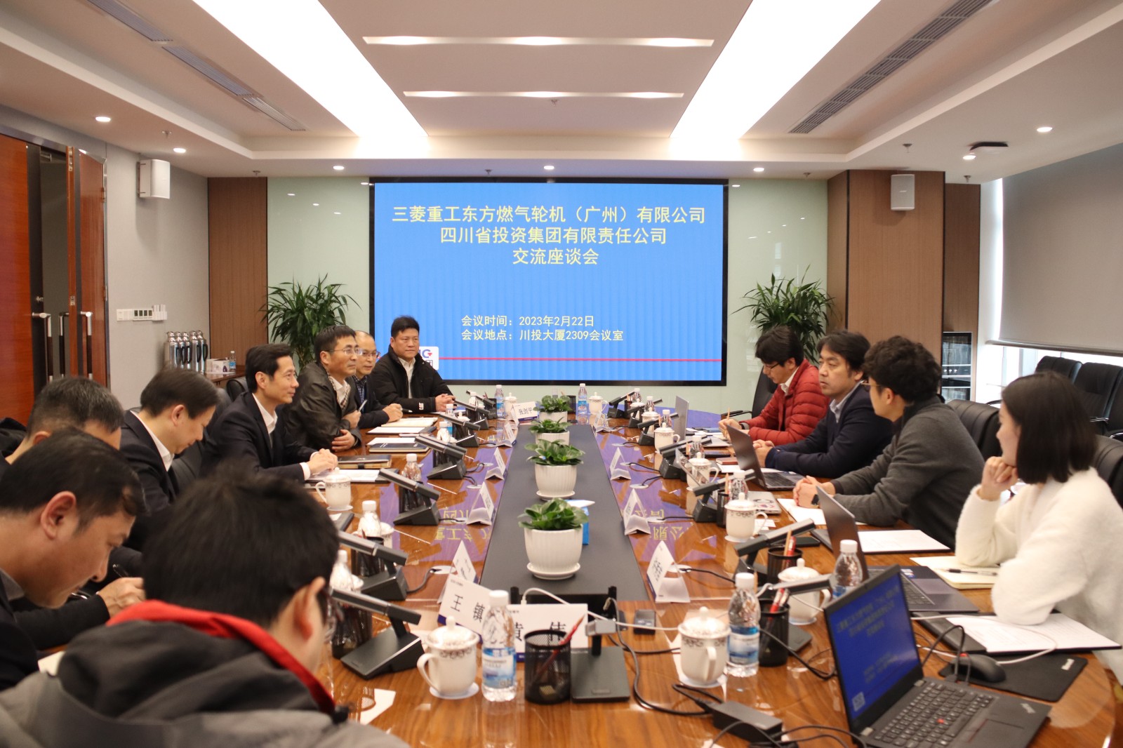 2023年2月22日,三菱重工东方燃气轮机(广州)有限公司(广州JV公司)总经理川上正尚一行到访川投集团开展交流座谈。集团公司副总经理张昊出席会议。川投燃电党委书记、董事长姚欣主持座谈。