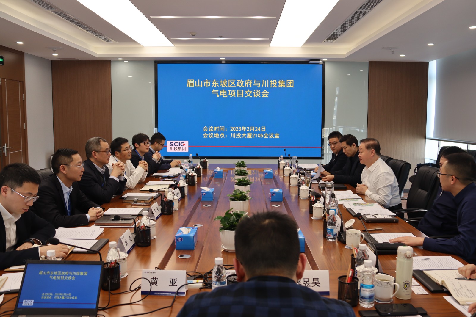 2月24日,眉山市人大常委会副主任、东坡区委书记廖小宁一行到访川投集团,就眉山天然气发电项目进行探讨交流。川投集团总经理助理、战略投资部部长田传平出席会议,会议由川投燃电党委书记、董事长姚欣主持。