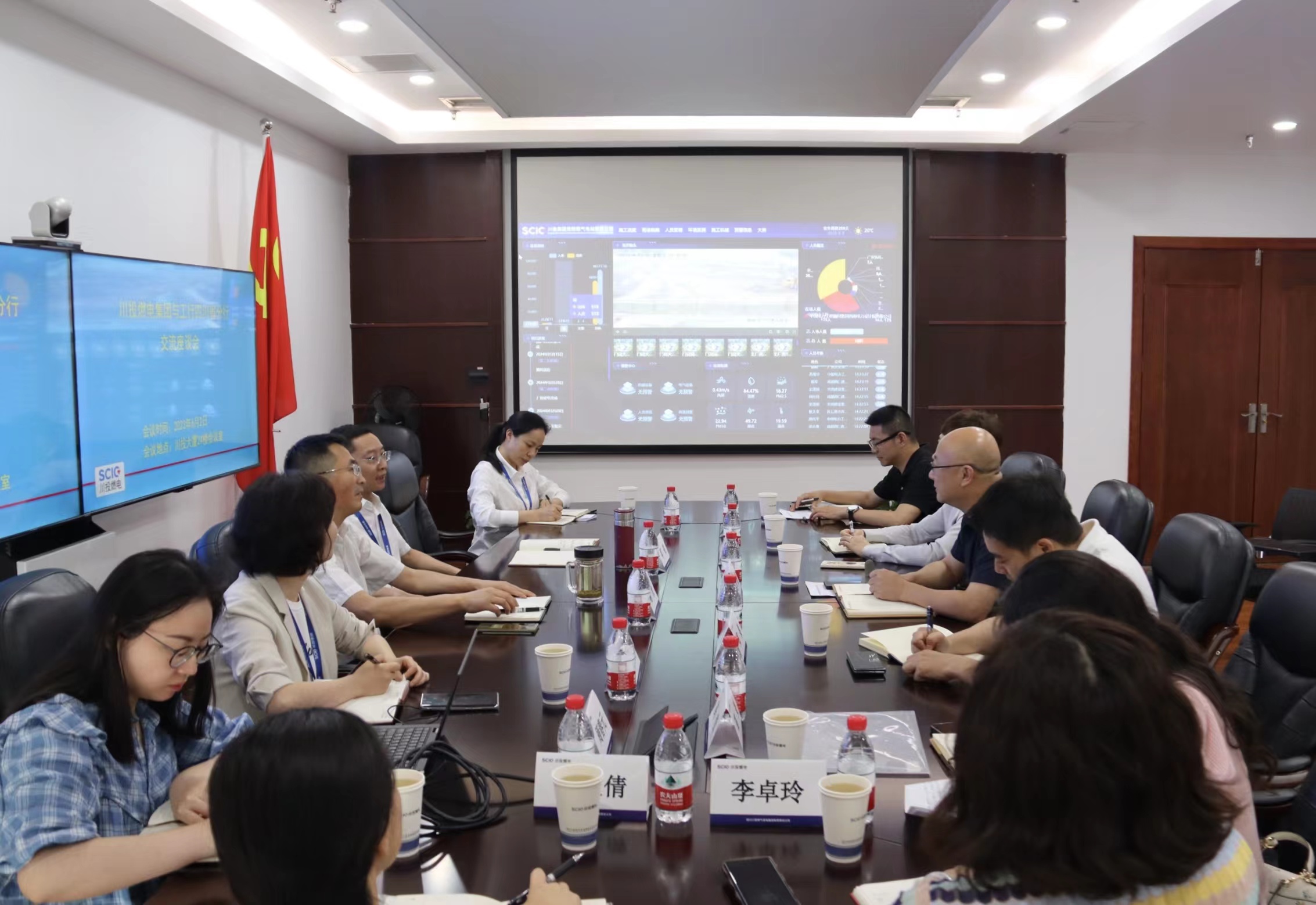 川投燃电财务总监祝瑗,工行成都分行公司部总经理唐杰,工行春熙支行副行长郑果及相关人员参加座谈交流。