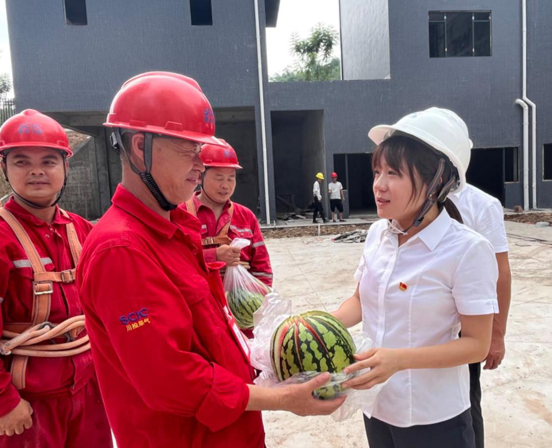 炎炎夏日送清凉,情系一线沁人心。持续高温闷热天气,给坚守一线的工作人员带来了严峻“烤”验,也时刻牵动着川投燃电集团领导的心。2023年7月21日下午,川投燃电党委副书记、职工董事、工会主席包婷婷一行来到荣县川燃安装施工现场,开展高温慰问送清凉活动,为奋战在高温一线的劳动者们道辛苦、送关怀,并送上防暑降温慰问品。