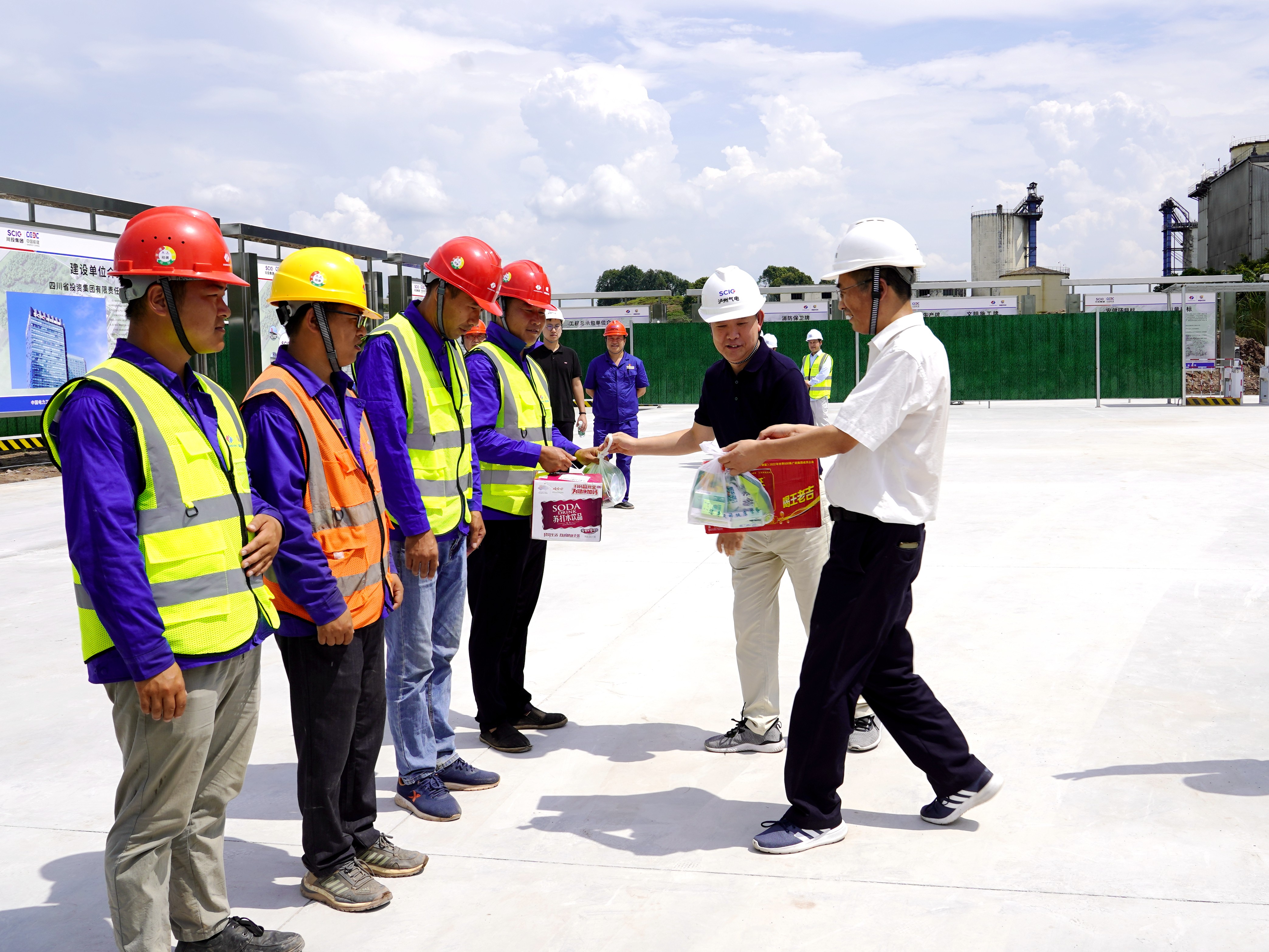 8月2日,川投集团安全环保部部长陶世贤,川投燃电党委书记、董事长姚欣,川投燃电副总经理饶明一行赴泸州气电开展“夏送清凉”慰问活动,向炎炎夏日奋战在一线的项目建设者们送去“清凉”和关爱。