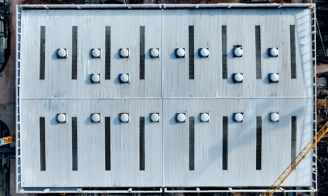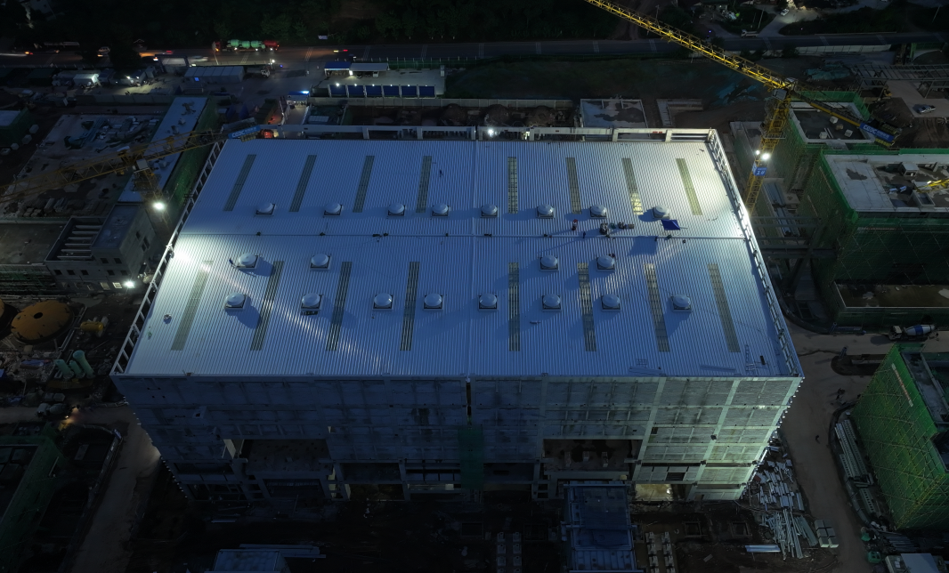 2023年8月28日11时38分,资阳燃气电站主厂房屋面全面止水,为后续机岛设备安装提供有利条件。