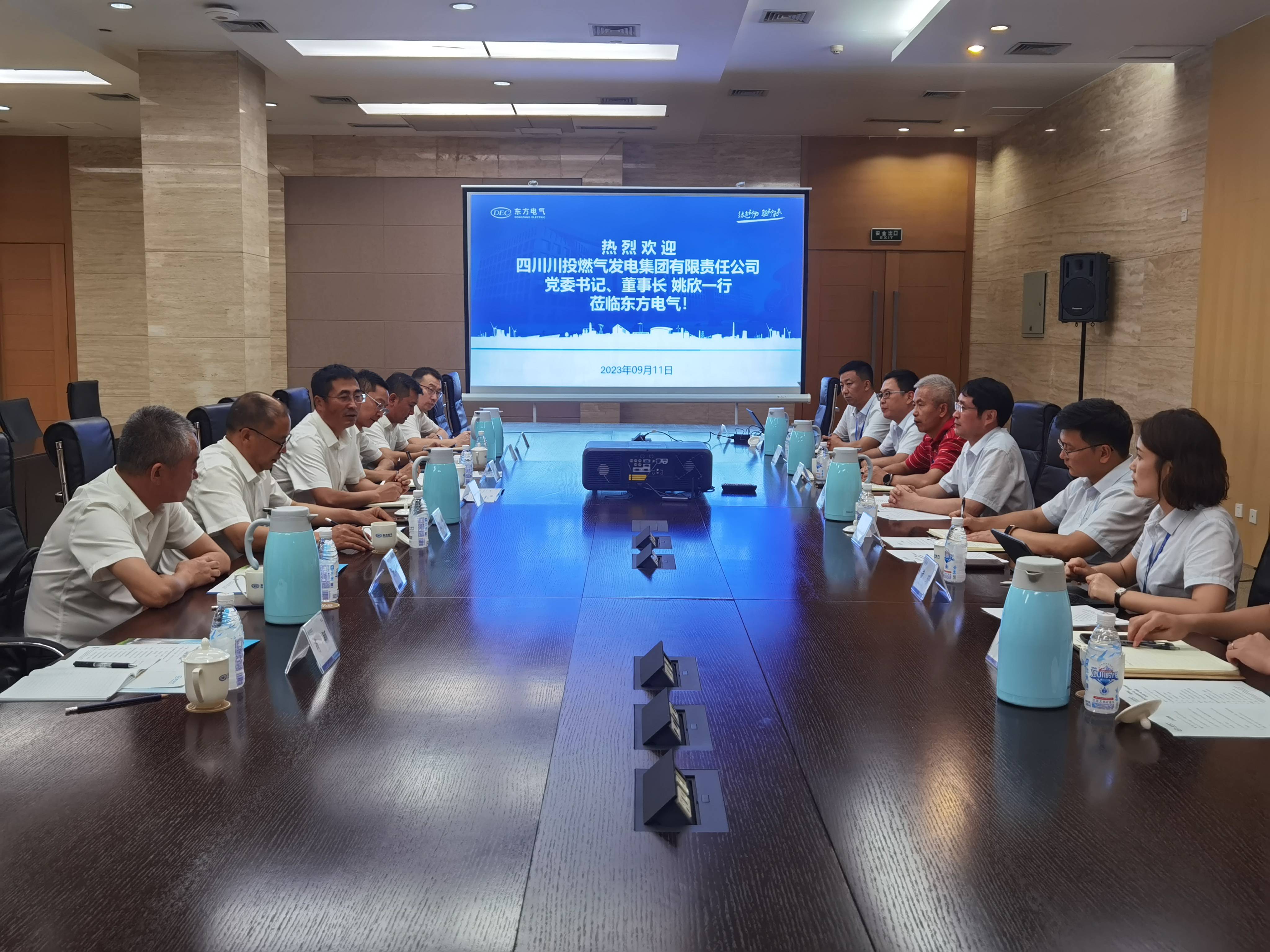 为加强信息共享、深化合作,共同推进四川达州燃气电站二期工程EPC总承包项目(以下简称“达州二期项目”)高质量推进,共谋发展新篇章。9月11日下午,川投燃电党委书记、董事长姚欣一行赴东方电气集团国际合作有限公司(以下简称“东方国际”)交流座谈。