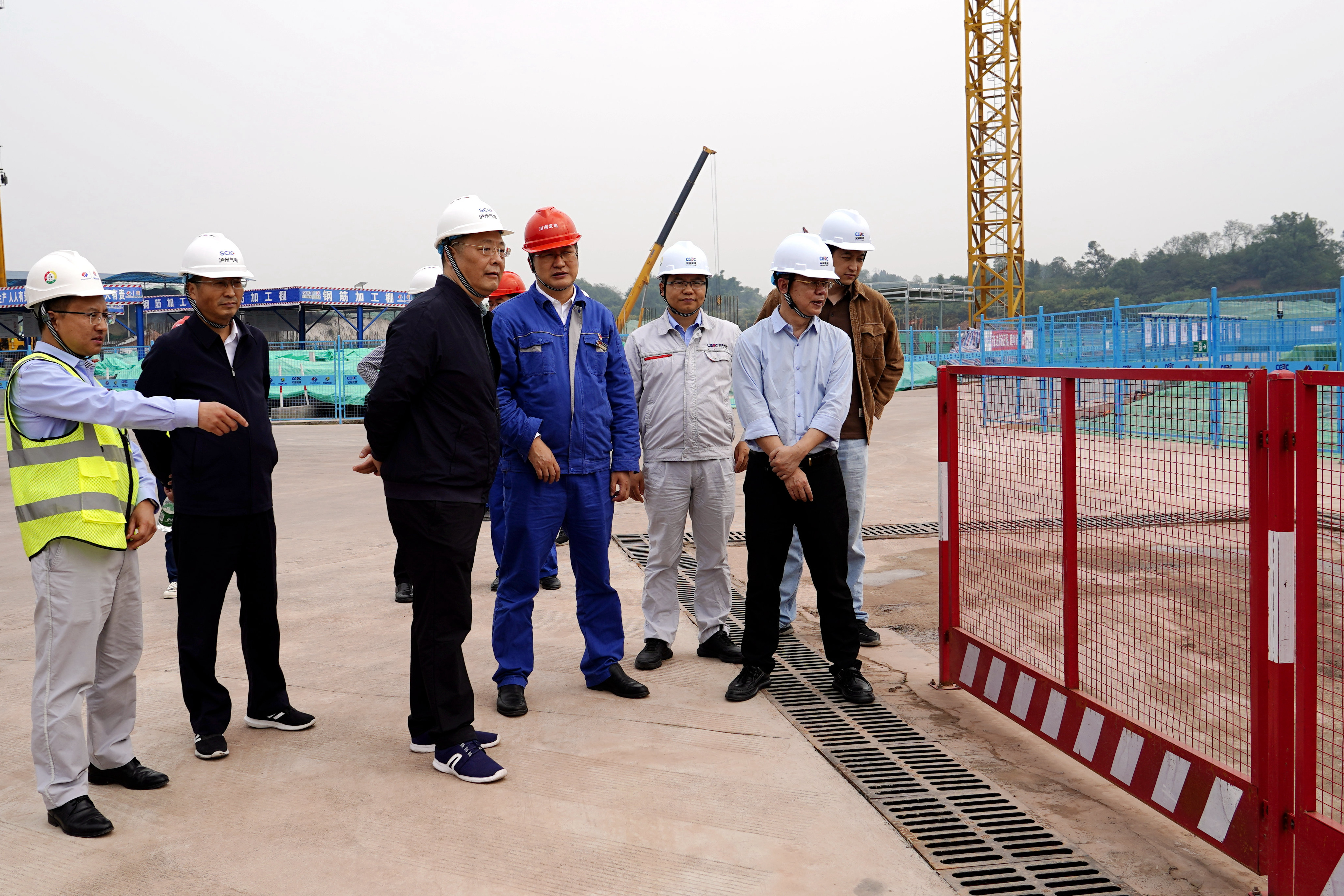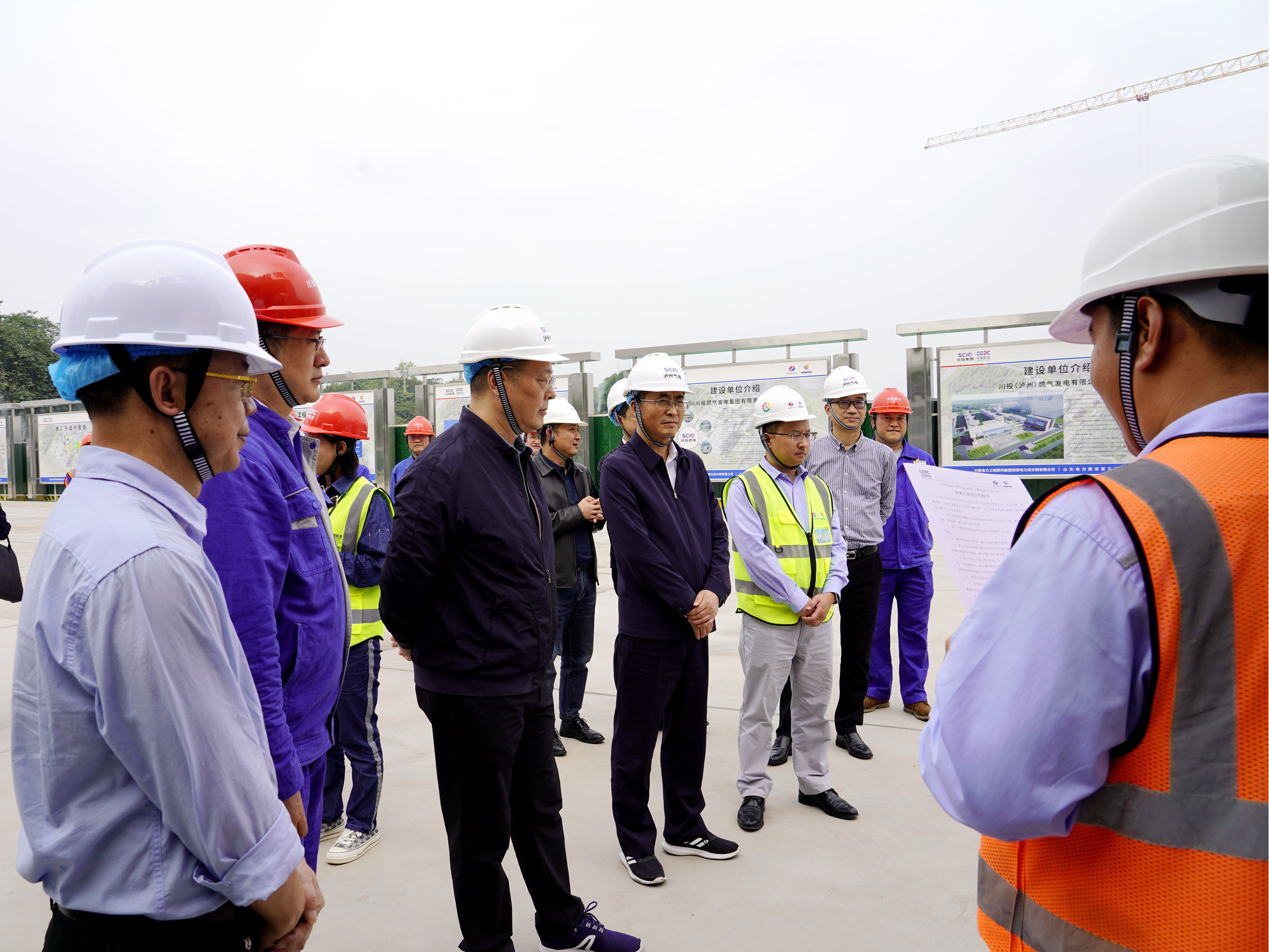 李文志一行深入川投泸州天然气发电项目现场,实地察看了项目主厂房、厂区道路等施工作业面,听取了泸州气电董事长、总经理刘胜金关于项目建设规划、工程进展、安全管理、合规管理、廉洁建设等工作情况的汇报。