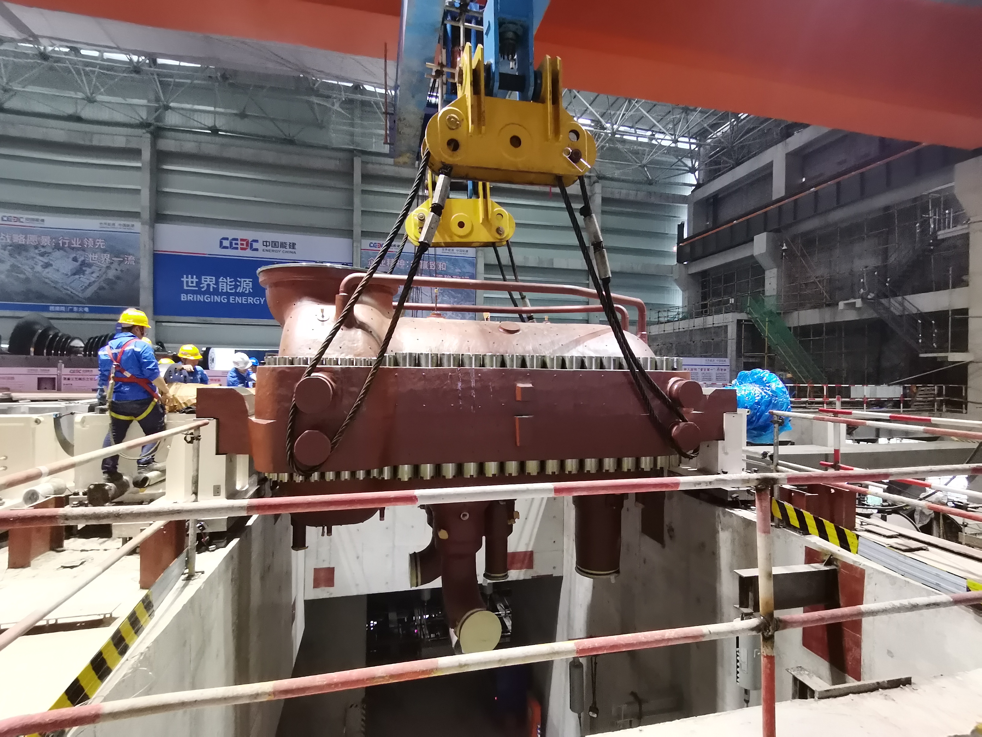 2023年10月24日16时08分,资阳燃气电站主厂房#1机高中压缸顺利就位。