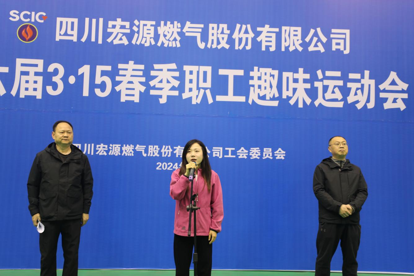 2024年3月15日,宏源气司春季职工趣味运动会在射洪市体育中心隆重举行。川投燃电党委副书记、职工董事、工会主席包婷婷出席活动。宏源气司党委书记、董事长、总经理李旭东带领班子成员、员工164人参加活动。川投燃电党委组织部(人力资源部)的同志应邀参加。