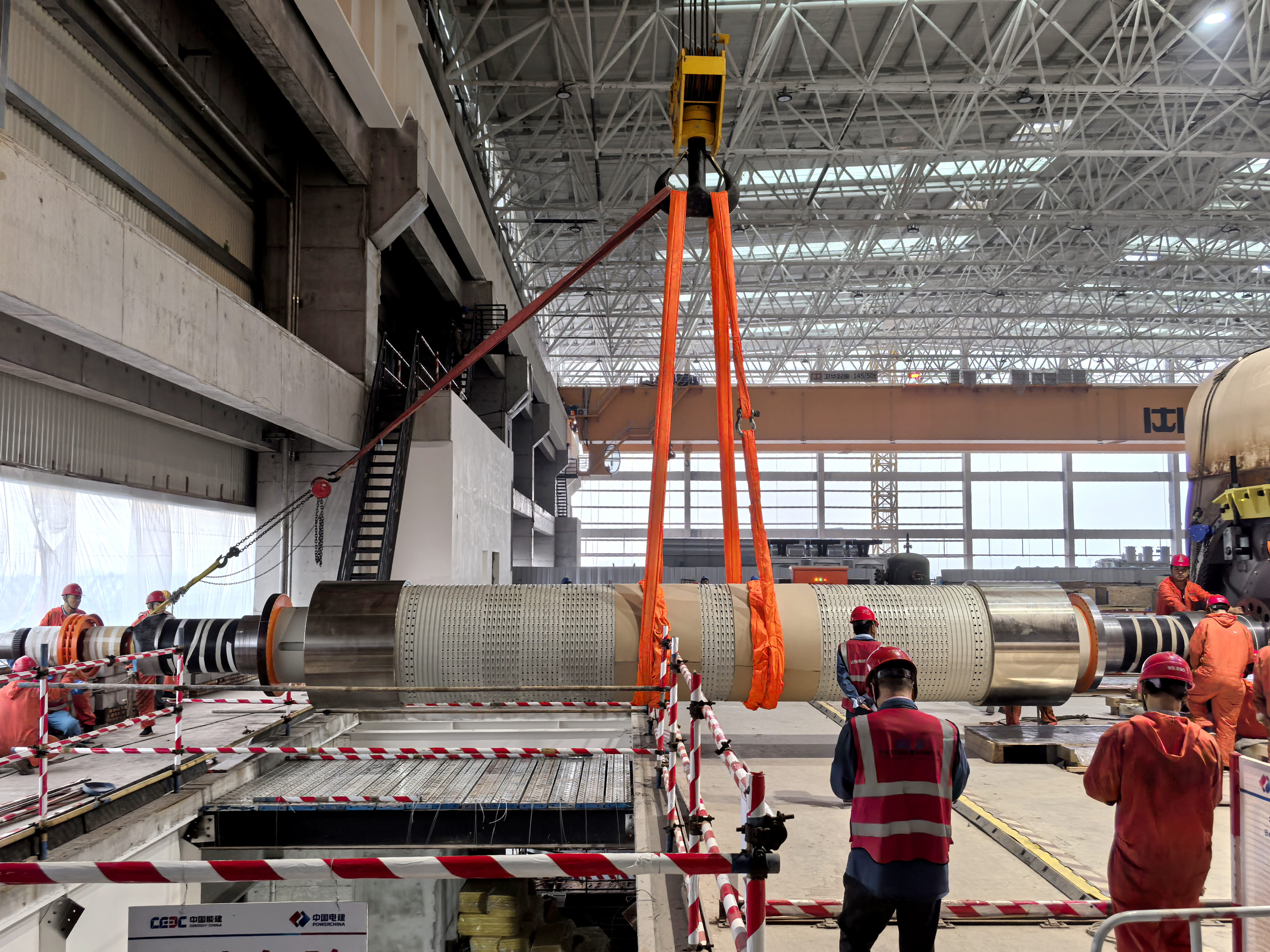 项目的机组发电机转子全长14米,重约88吨。在发电机安装过程中,转子的穿装是至关重要的环节。为确保首次穿转子工作的顺利进行,各参建单位提前筹备,多次召开专题会,详细梳理每一个技术细节,确保穿装方案的细致周密。