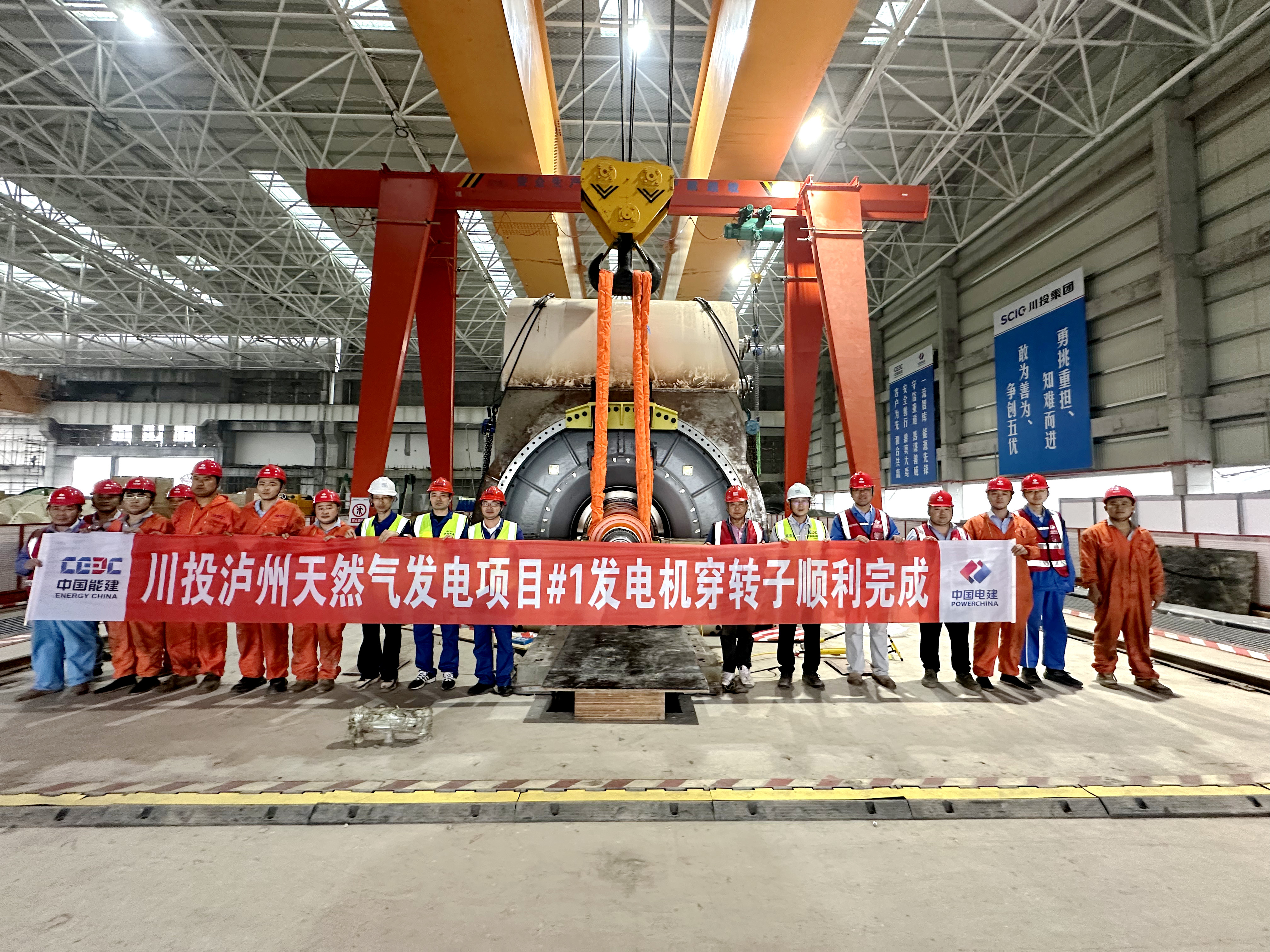 10月31日,川投泸州天然气发电项目1号机组发电机转子顺利完成穿装。