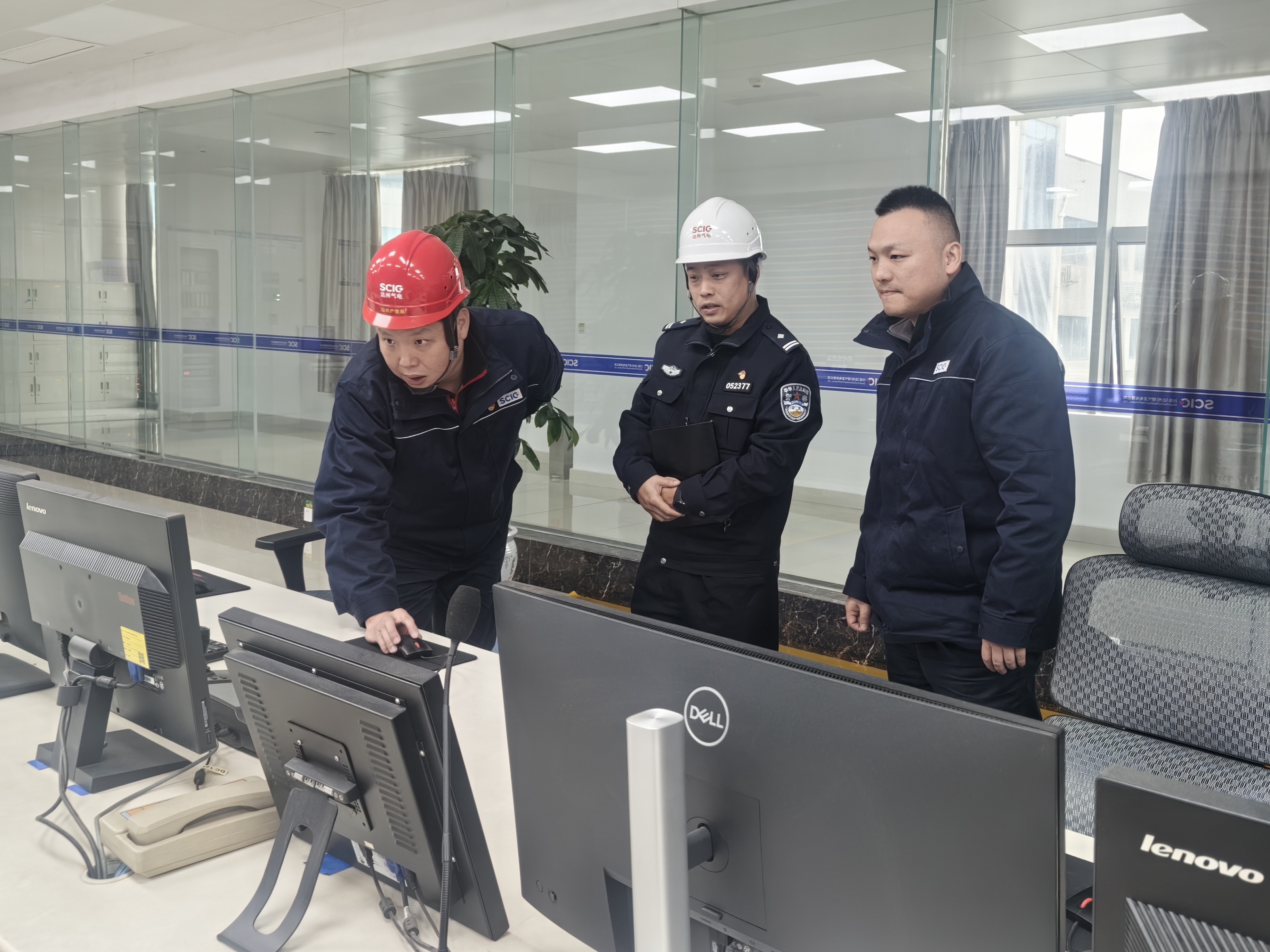 万天龙一行依照相关法律法规及治安保卫工作标准,深入达州气电的财务室、警务室、生产一线以及监控中心等关键区域,对企业的人防、物防、技防等安保措施展开了细致检查。检查结束后,检查组与公司领导及安保管理人员进行了深入交流,详细了解企业治安保卫工作现状,并认真听取了相关意见与建议。