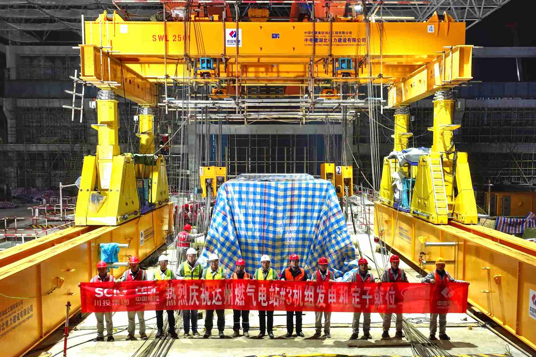 【川投燃电】达州气电二期工程3号发电机定子顺利吊装就位