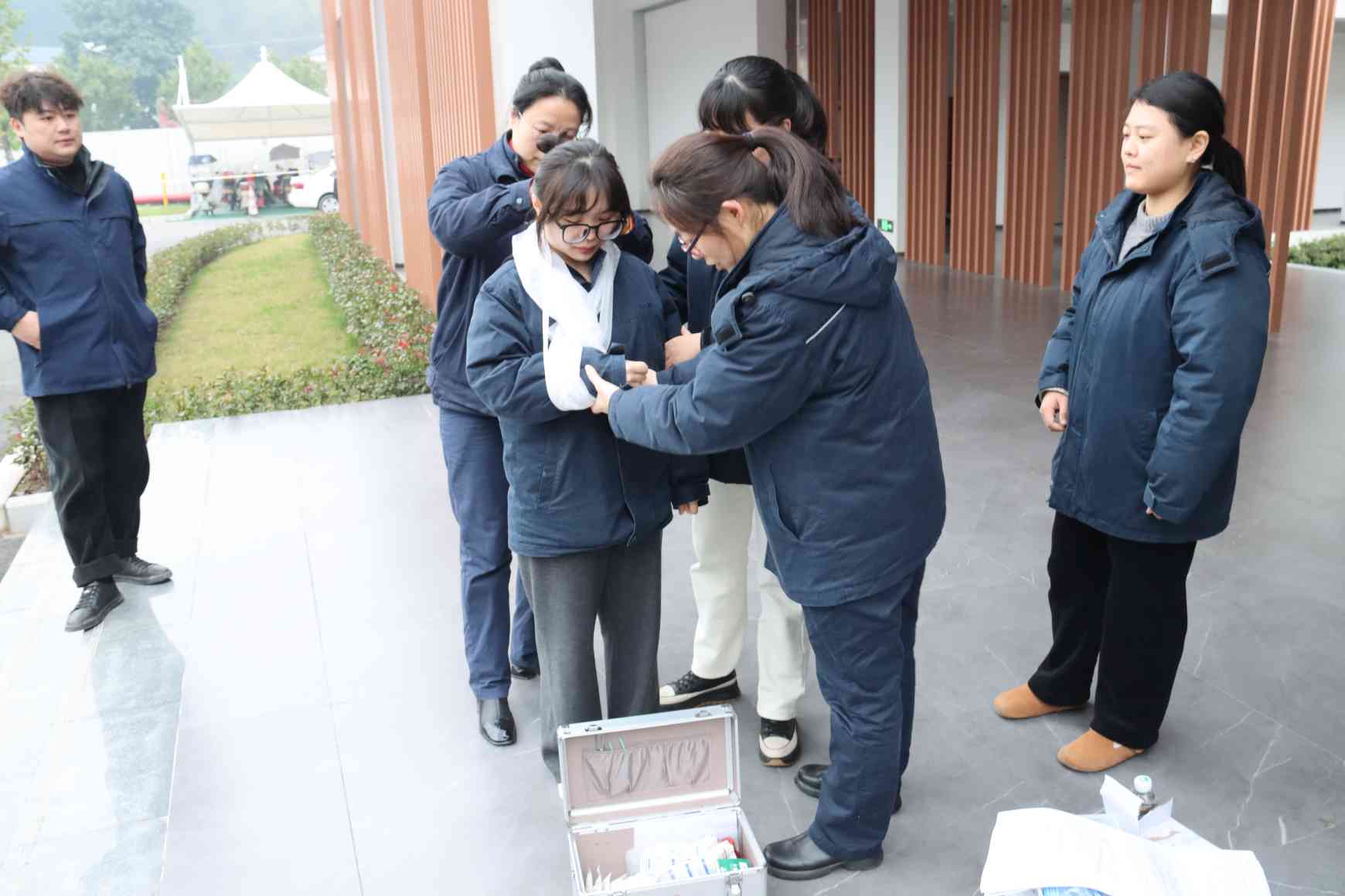 本次演练模拟公司载人中巴车行驶时不慎与停靠员工食堂口的工程车发生碰撞,由于紧急制动导致车上一名员工手臂受伤、车辆受损的场景。演练过程中,接到司乘人员事故报告,应急领导小组结合事故实际启动IV应急响应,各小组有序完成现场保护、伤员救护、安全疏散等演练环节,现场演练取得预期成效。