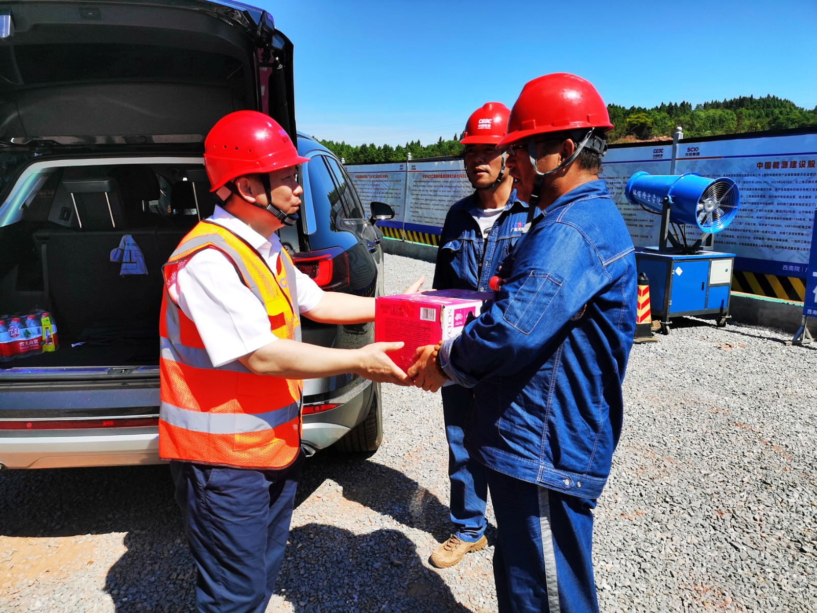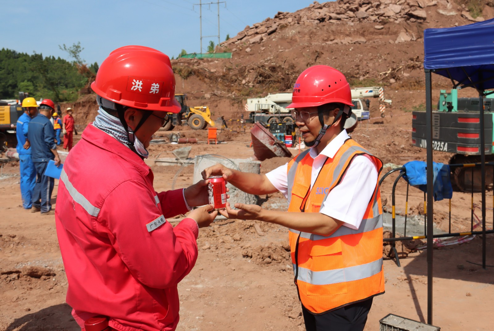 8月12日,资阳气电公司执行董事、总经理梁红兵带队来到工地现场开展“夏日送清凉”活动,慰问烈日下辛勤工作的各参建单位员工。