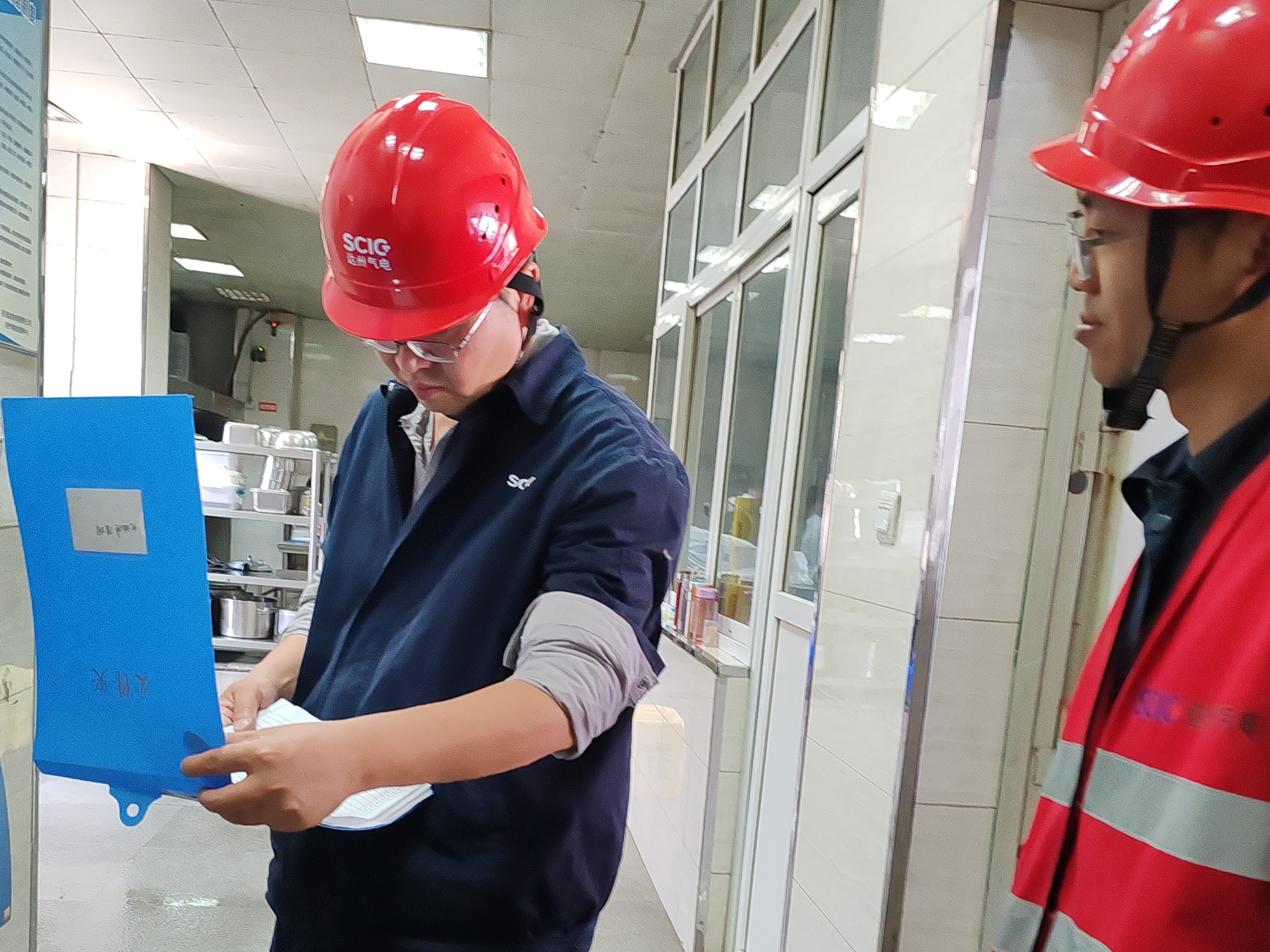 检查组先后来到一期集控室、2号机组检修现场、应急物资库房、天然气管线、食堂等关键区域,对设备运行、作业规范、物资储备、后勤保障等情况进行细致排查。在检查过程中,详细了解五一期间1号机组运行安排、2号机组检修进度推进及汛前应急物资储备状况。