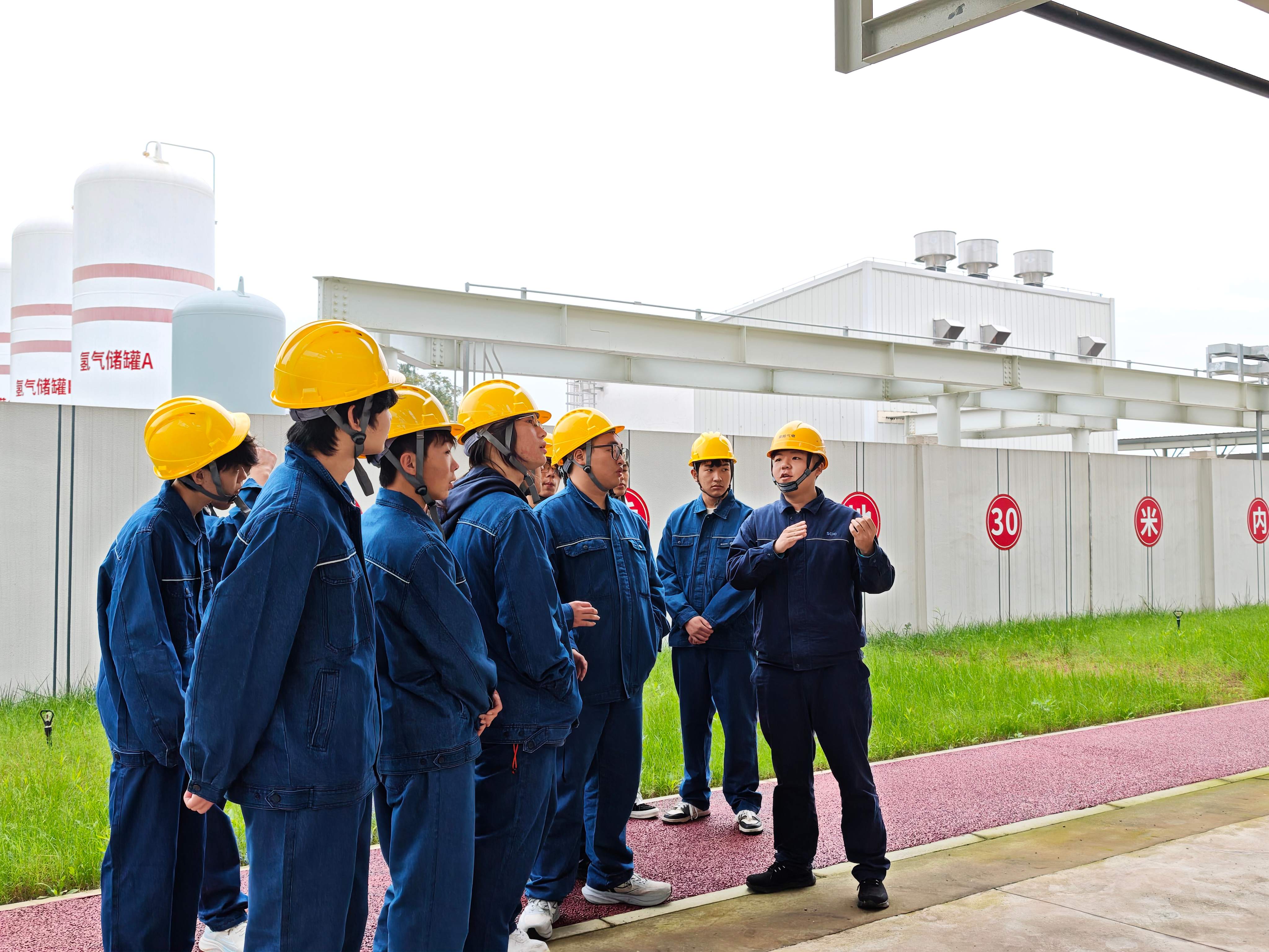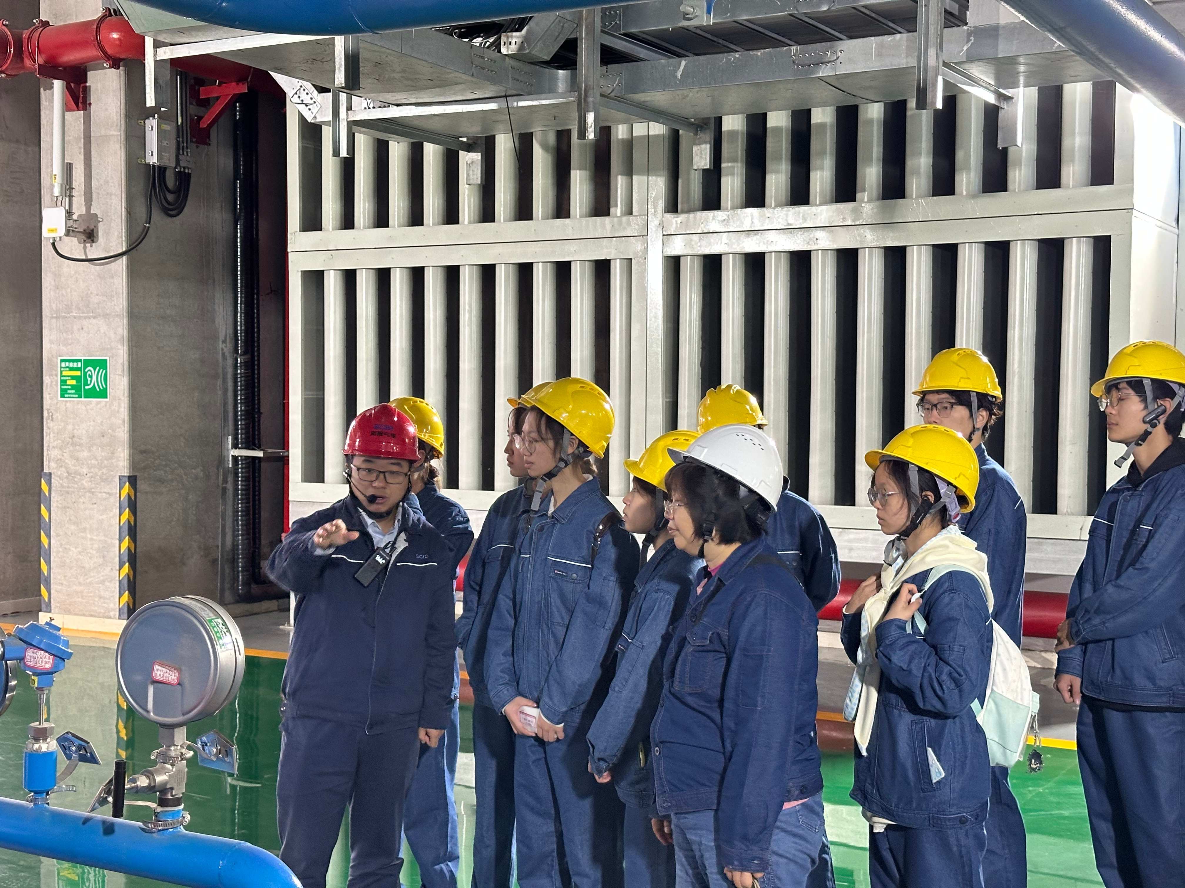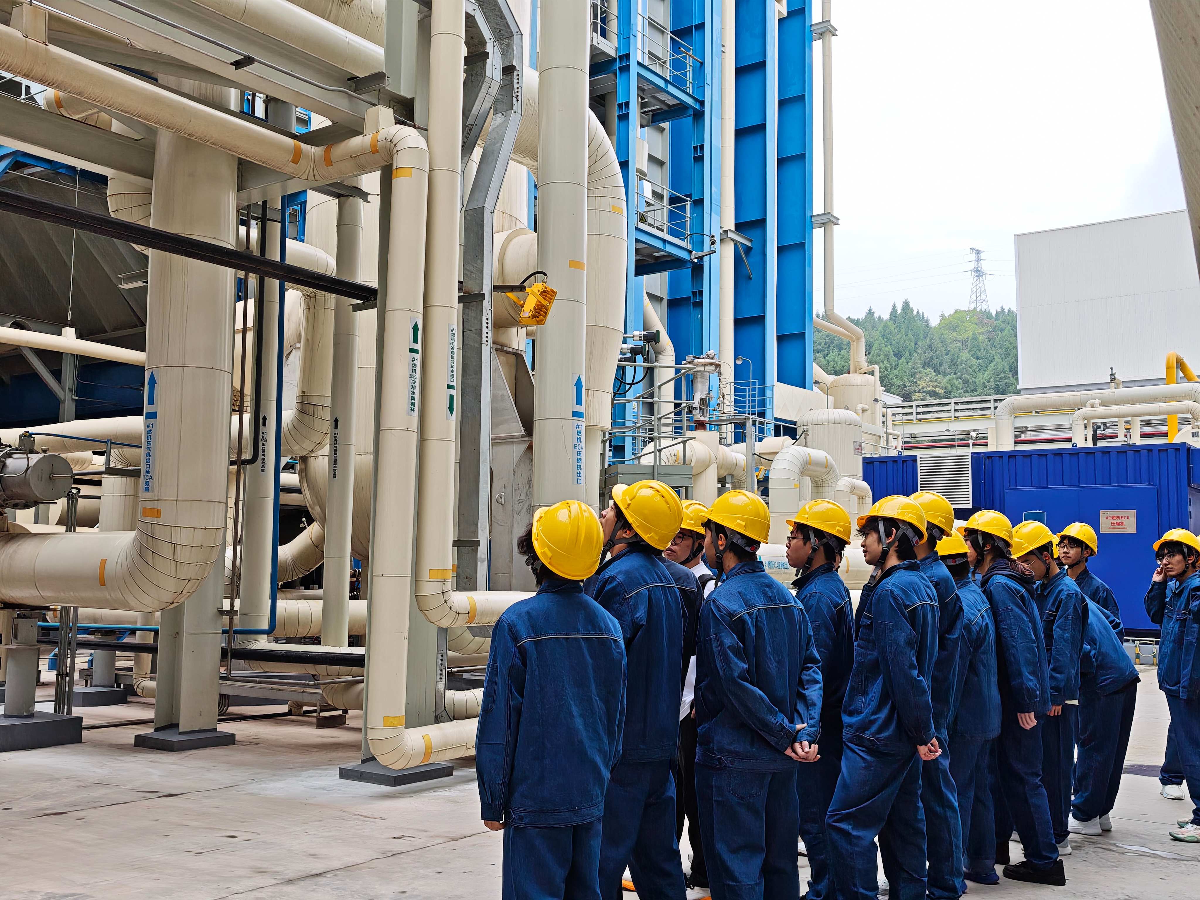 在工作人员的全程陪同下,同学们沿着“展厅-智慧中心-生产现场-厂前区”的参访动线,零距离感受现代化清洁能源电厂的运行实况。在智慧管控中心他们通过观察运行人员操作,了解如何用数字化手段精准调控机组运行;在生产现场他们通过实地查看燃机、发电机、余热锅炉等设备,了解电厂布局、H级燃机的技术优势。
