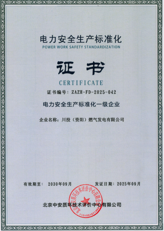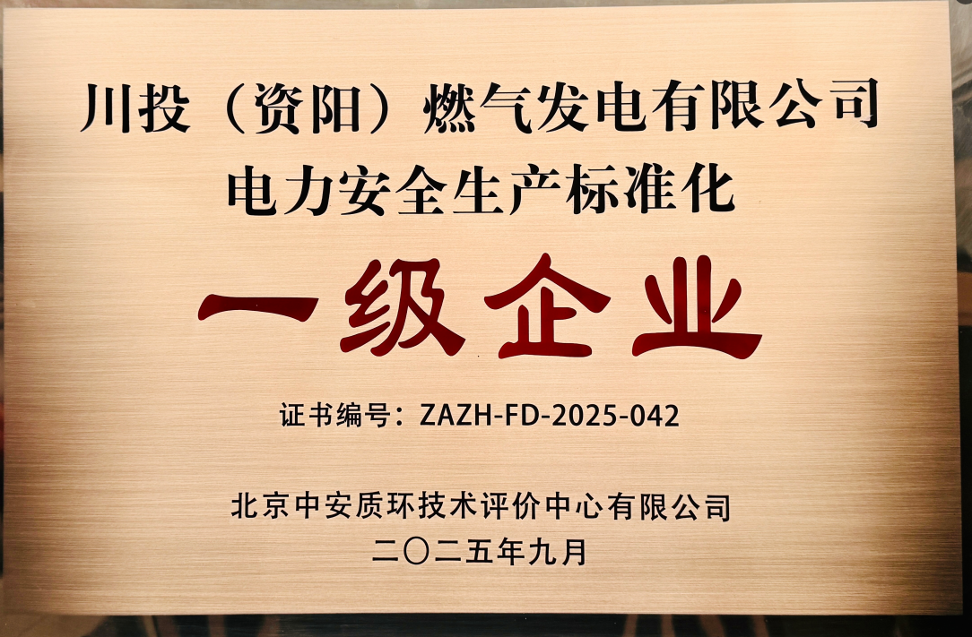 近日,资阳气电凭借健全的安全管理体系、规范的作业流程、扎实的安全实践和“零事故”安全管理业绩,顺利通过电力安全生产标准化评审,获得电力安全生产标准化一级企业证书,并已在国家能源局四川监管办公室备案。