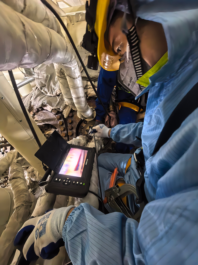 本次例行检查项目增加了近期同类型机组发生的故障,检查和隐患治理共历时5天。检查范围覆盖燃机核心关键部件,包括燃烧器旋流器涂层、旋流器压缩空气进气多孔板螺栓、联焰管、透平1级动静叶及分割环、压气机15级动静叶、OGV、排气段挡气板螺栓及防喘放气消音器支撑焊缝、IGV(进口导叶)与VV(可变喷嘴)链接装置、TCA冷却空气惯性过滤器后回气管道清洁度等关键部位,实现核心系统全覆盖、无死角排查。