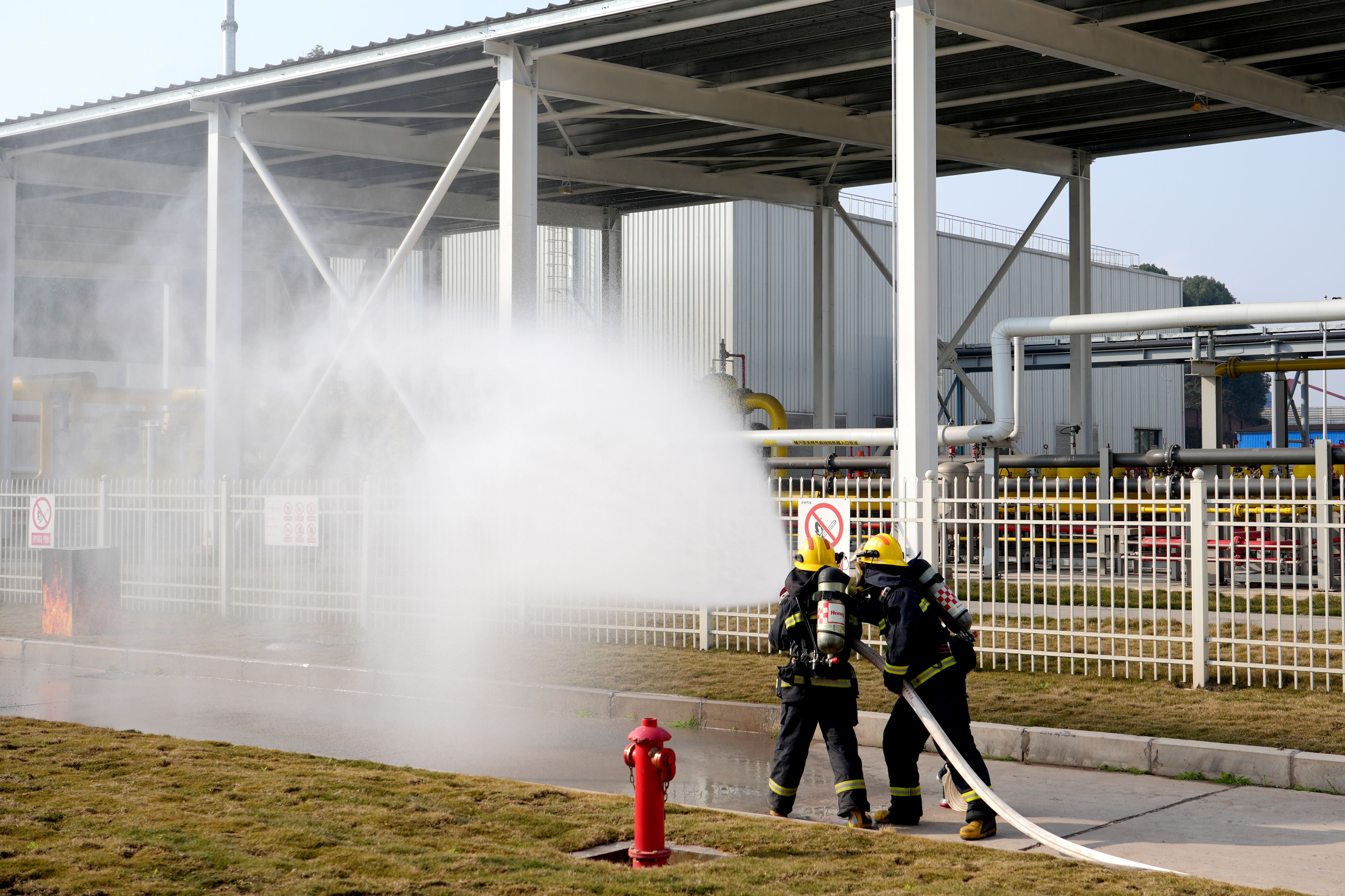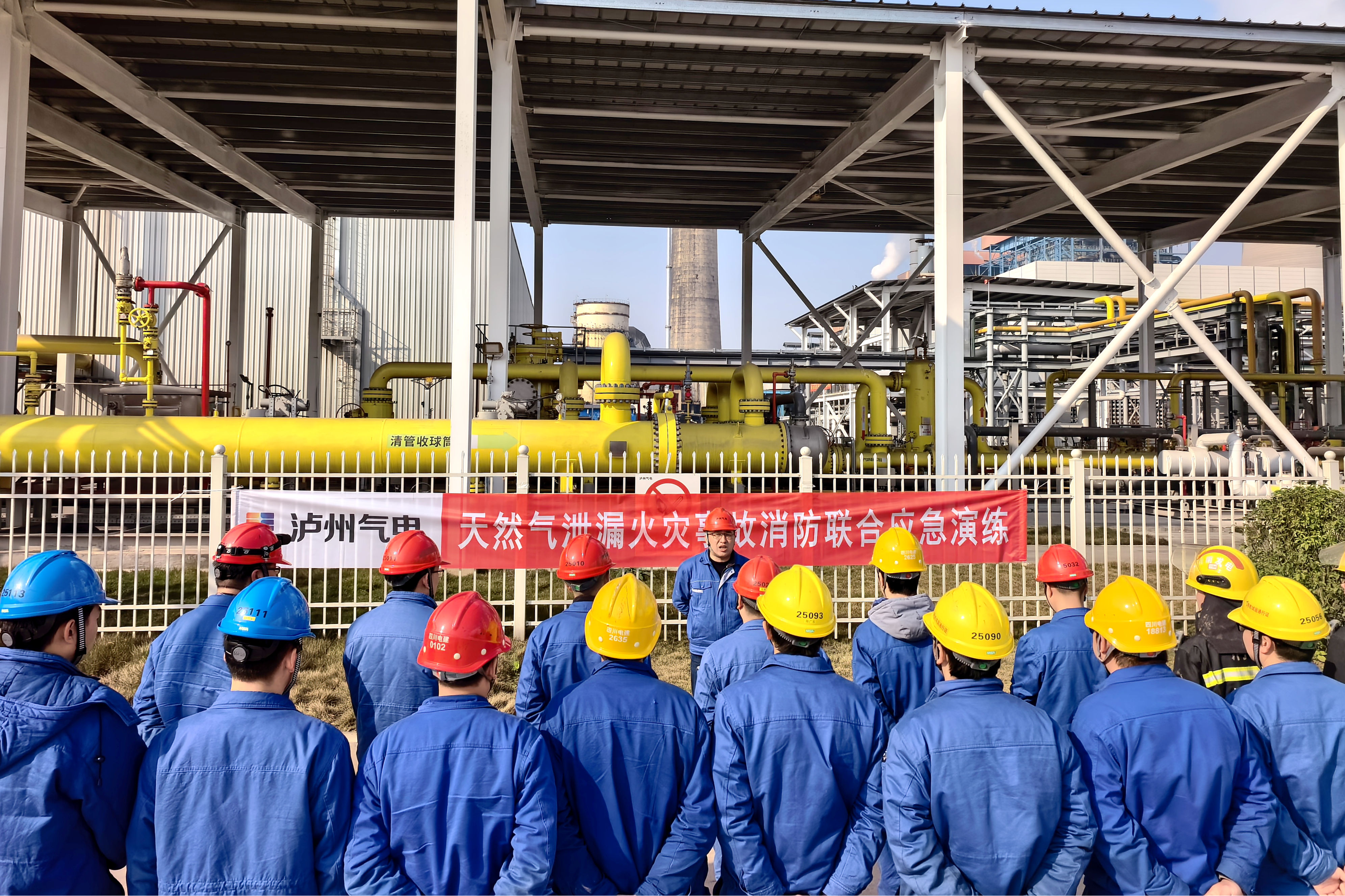 为强化消防安全保障能力,提升突发火情协同处置水平,2月11日上午,泸州气电组织各部门、外委维护单位和消防队,在厂内调压站区域开展天然气泄漏着火事故消防联合应急演练。本次演练以实战化方式检验应急处置流程,全力筑牢职工生命安全和公司财产安全防线。