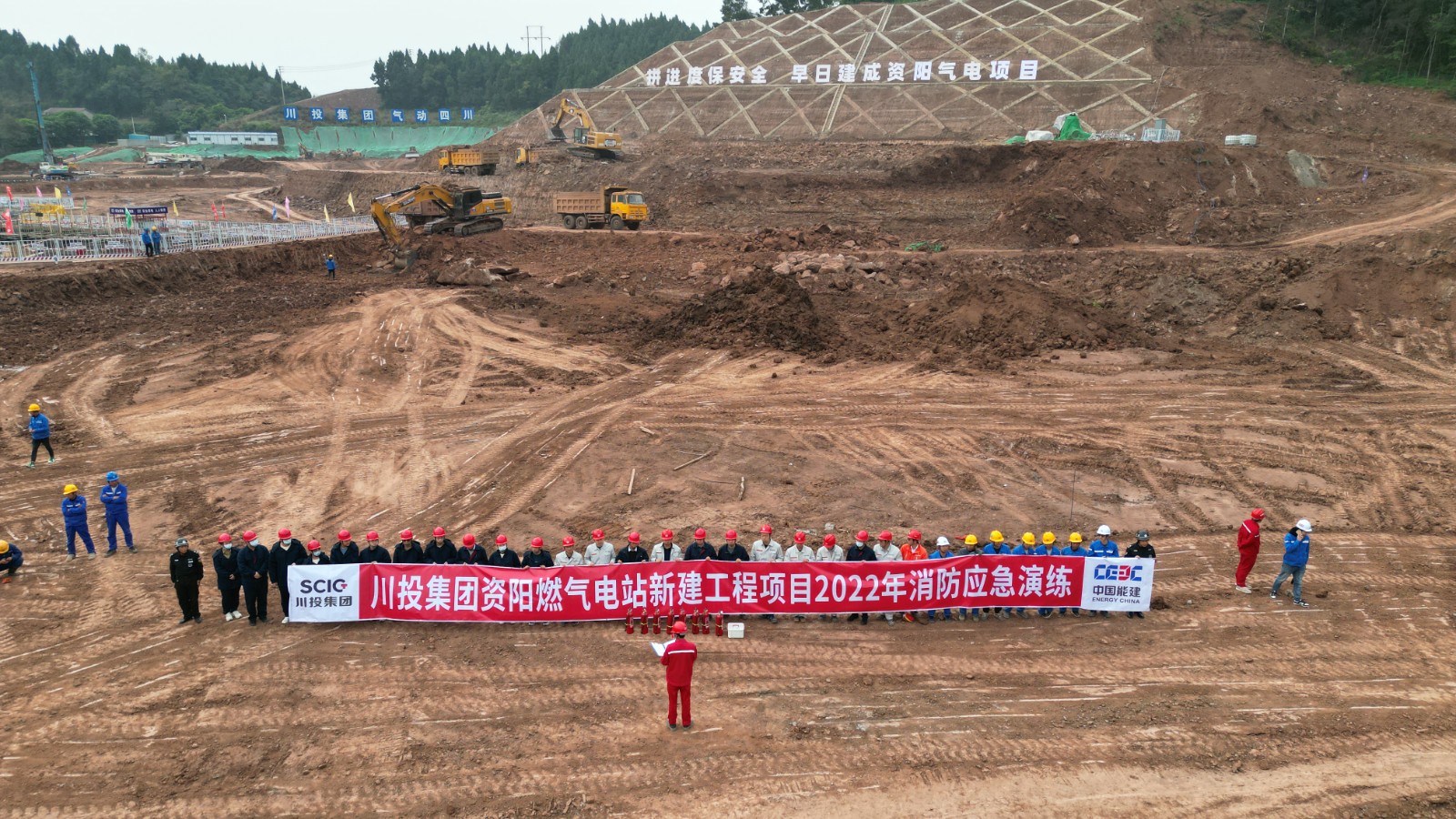 为贯彻“抓消防安全,保高质量发展”的主题,落实全国第31个消防宣传月工作安排,进一步提高参建各方消防安全意识,着力提升工程建设人员的消防应急处理能力,11月18日,资阳燃气电站开展了消防应急演练。资阳气电、EPC总承包项目部、监理公司项目部共40余人参加此次演练。