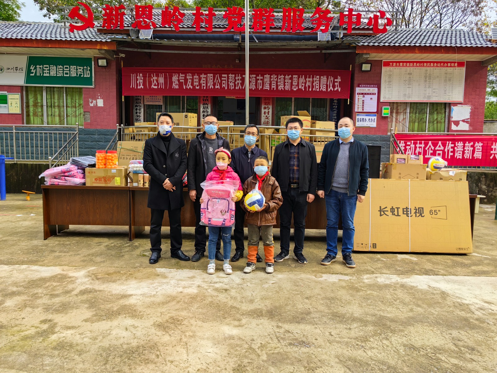 鹰背镇党委书记邱志勇,镇长唐川,新恩岭村支部书记苟猛;达州气电第一、第二党支部支委委员,有关部门负责人参加帮扶活动。