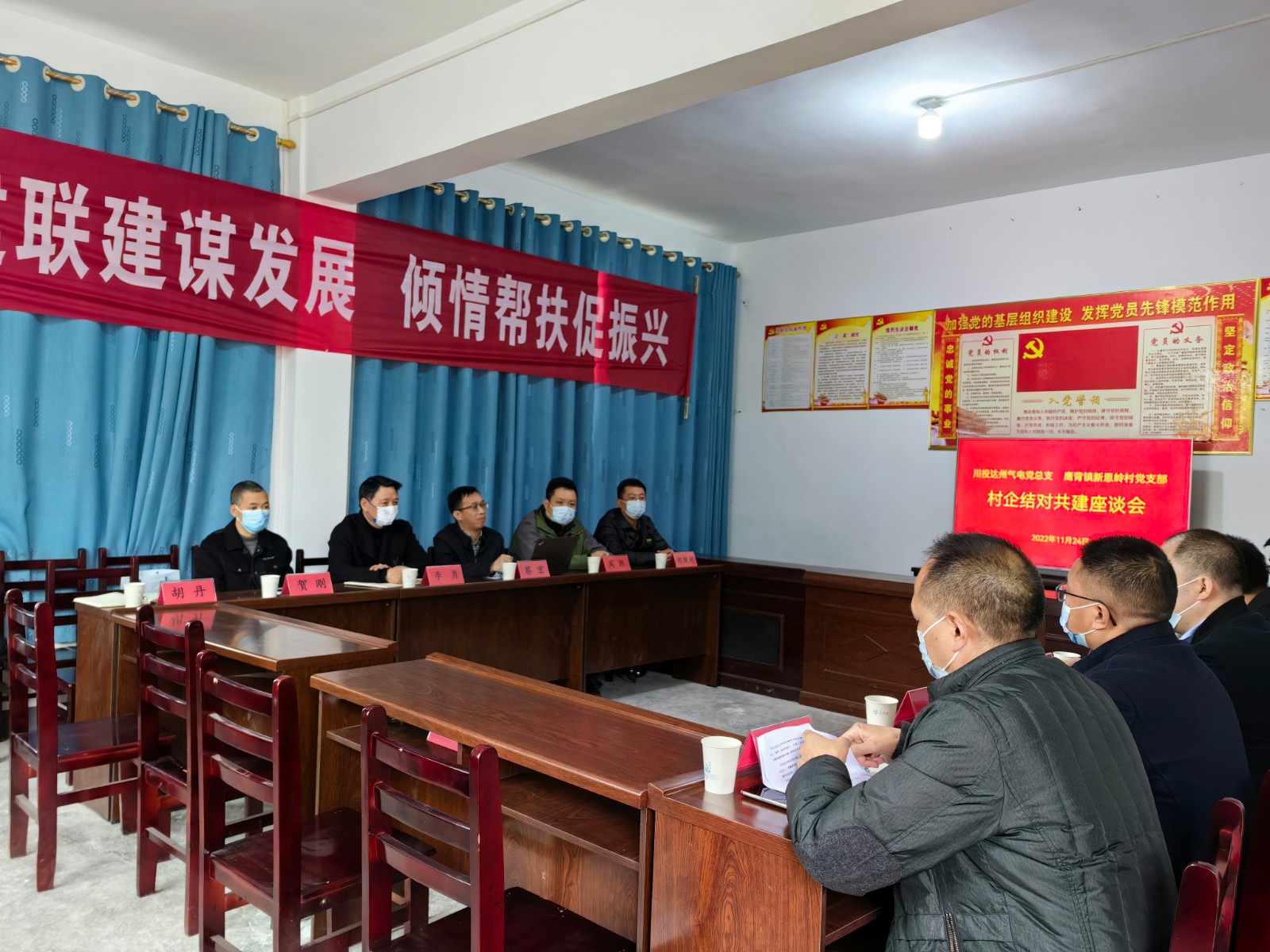 在新恩岭村村委会,蔡宏一行与鹰背镇党委班子进行了村企结对共建座谈,交流学习党的二十大精神,共同探讨推进乡村振兴,巩固拓展脱贫攻坚成果,增强脱贫地区和脱贫群众内生发展动力。