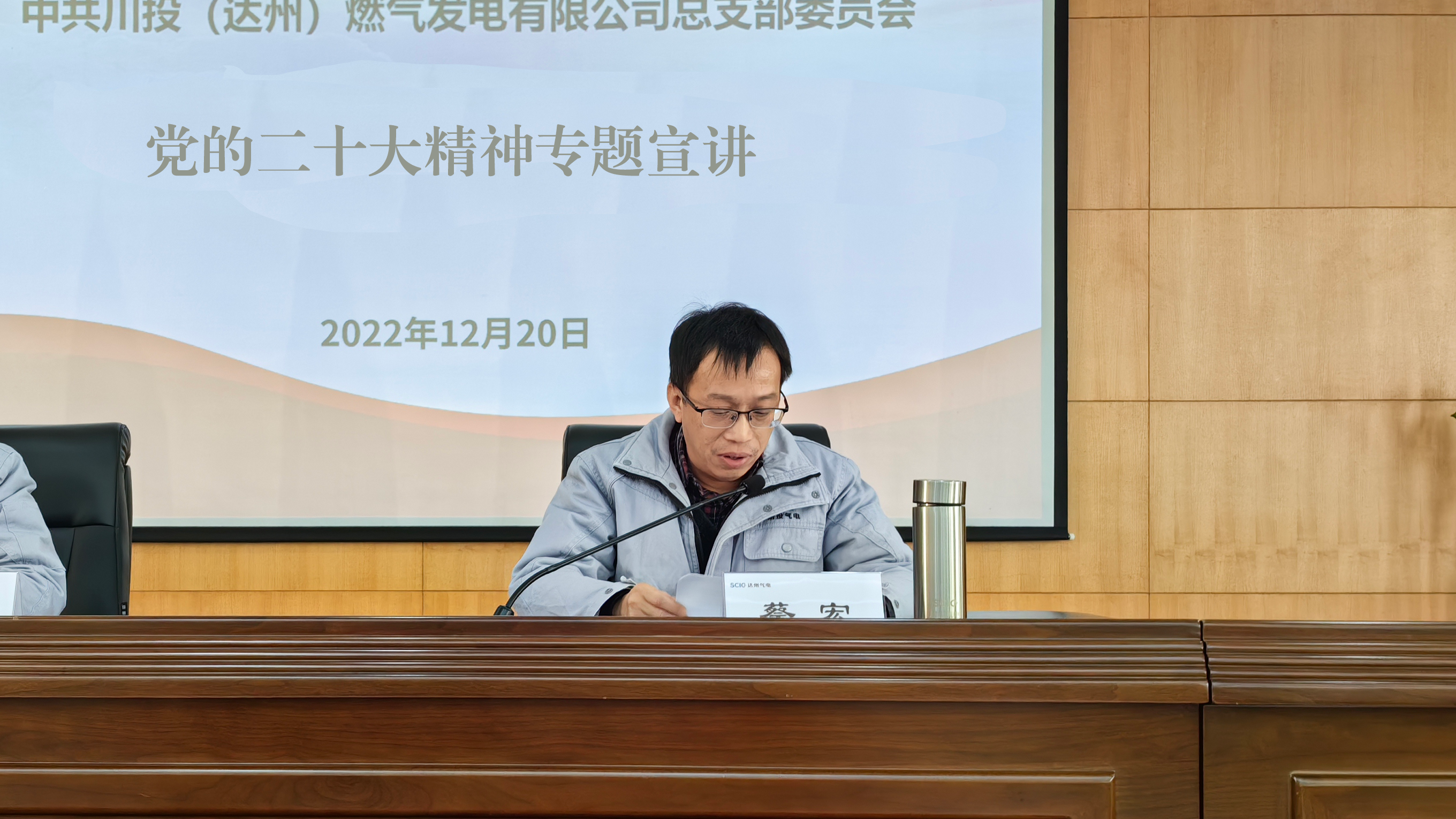 为深入学习宣传贯彻落实党的二十大精神,12月20日,达州气电党总支书记、总经理蔡宏在六楼会议室开展党的二十大精神专题宣讲。公司领导、中层干部、全体党员、入党积极分子参加会议。