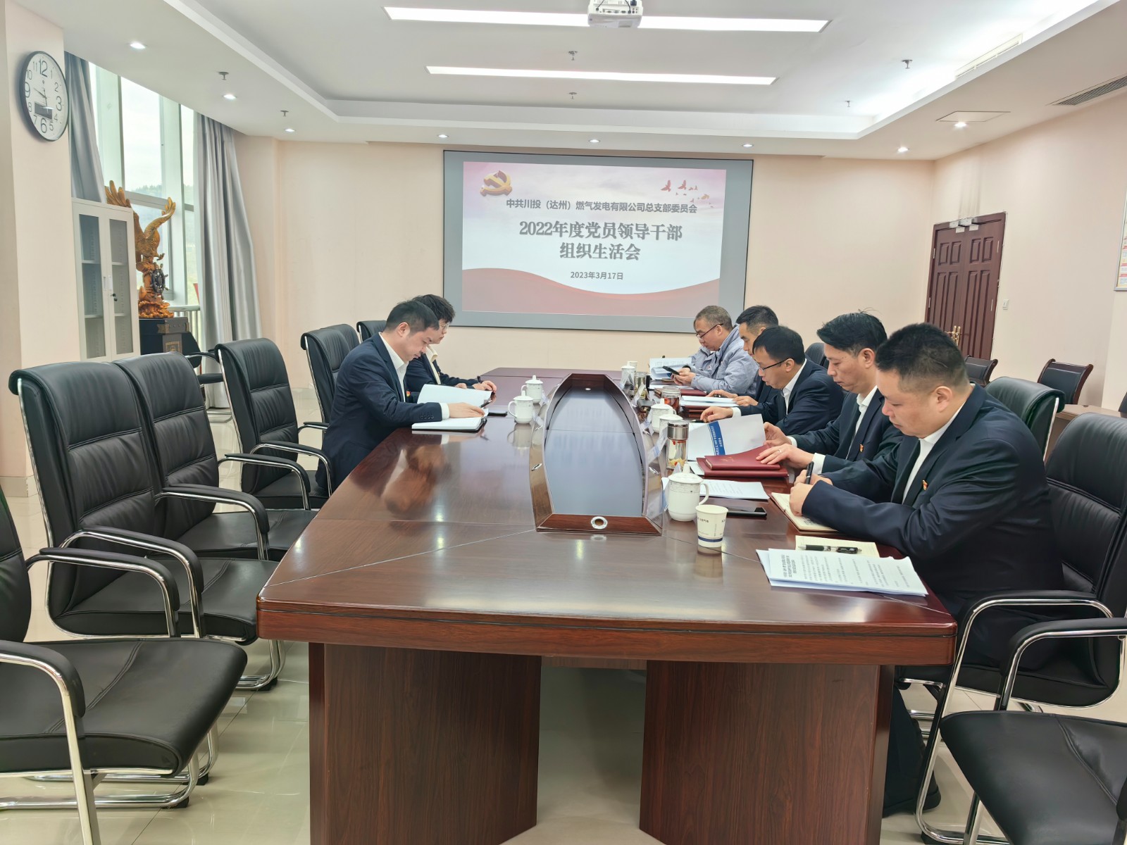 3月17日,达州气电党总支召开2022年度党员领导干部组织生活会,川投燃电党委第二指导组到会指导。达州气电党总支书记、总经理蔡宏主持会议,全体党总支委员参加会议,党支部书记列席会议。