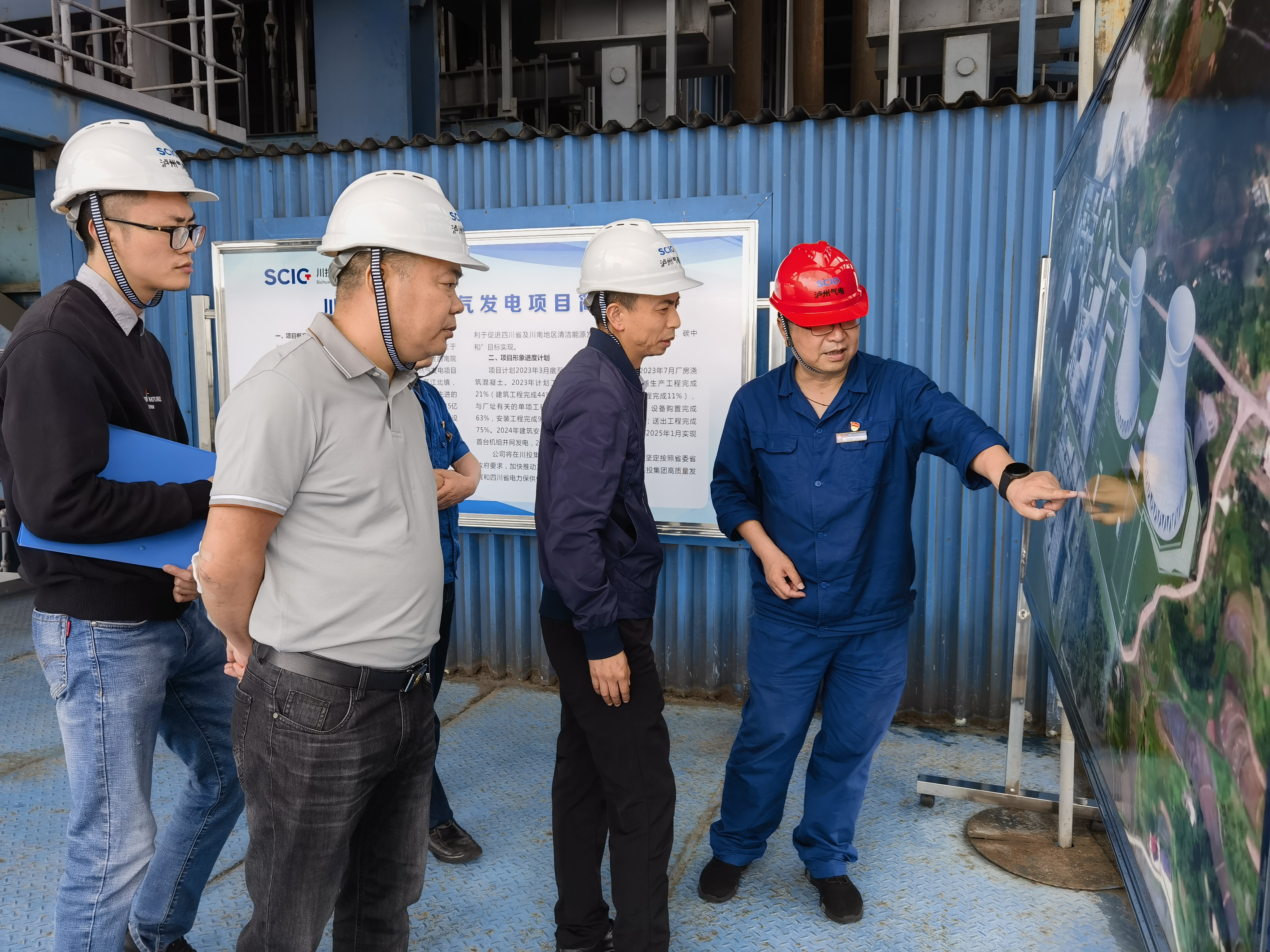 5月9日,泸州市江阳区发展和改革局机关党委书记熊焰飞带队到泸州气电调研指导川投泸州天然气发电项目建设相关工作。
