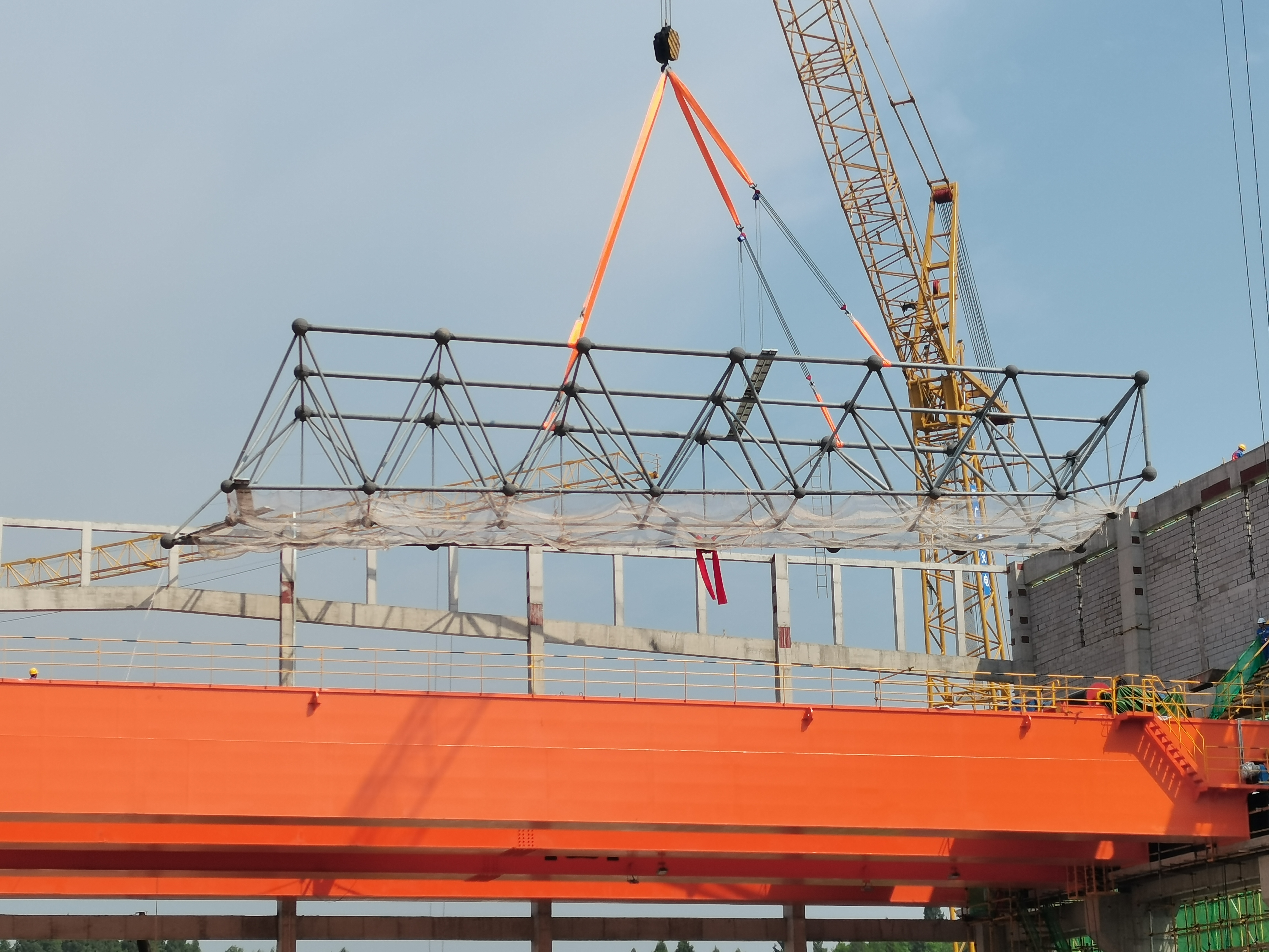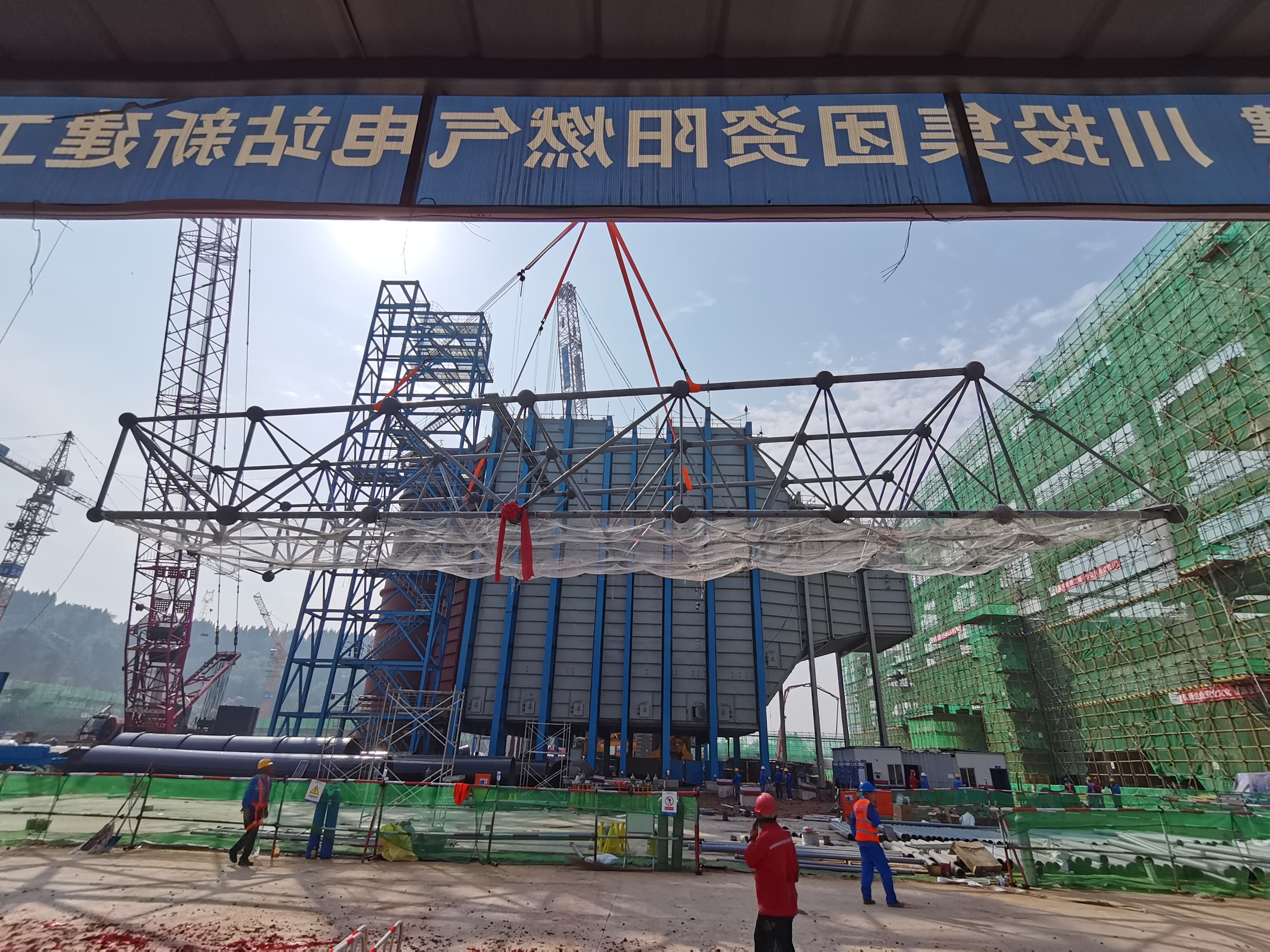 2023年6月9日8时18分,资阳燃气电站主厂屋面网架开始吊装。