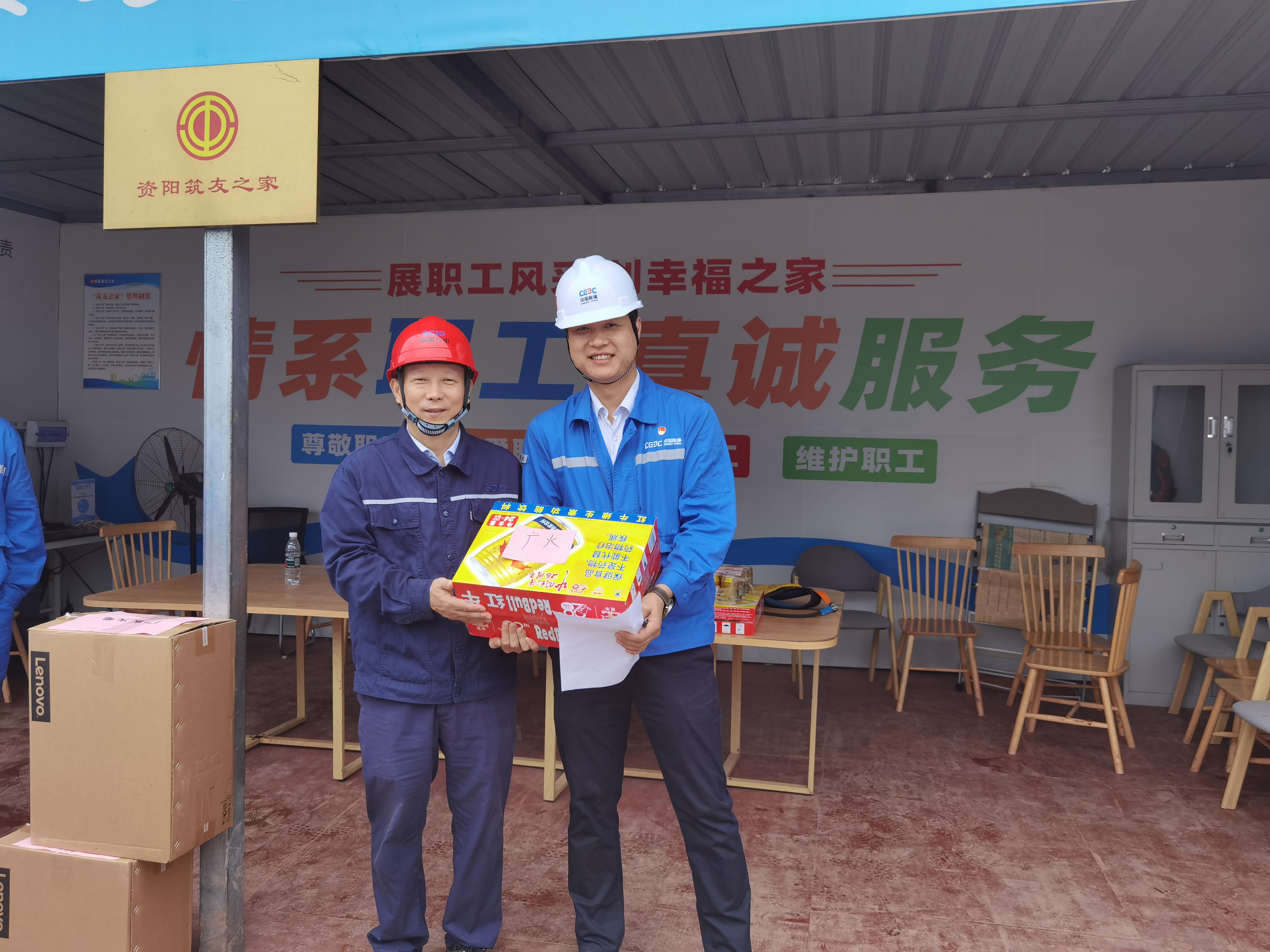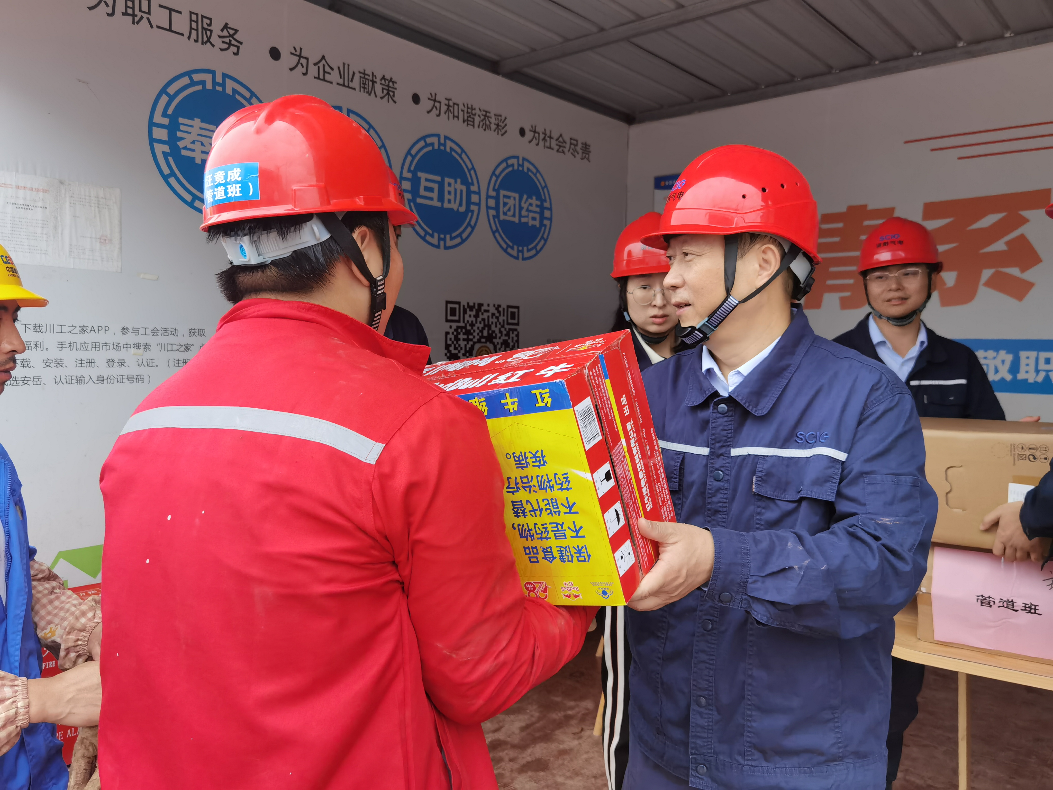 中秋节当天一早,川投燃电党委委员、副总经理,资阳气电党支部书记、执行董事、总经理梁红兵带队先后来到项目主体工程施工现场和220kV送出工程项目部,为坚守岗位的一线建设者们送上月饼、饮料等慰问品和节日的祝福,衷心感谢他们对项目建设的辛勤付出和无私奉献,叮嘱大家在工作中保重身体、注意安全。