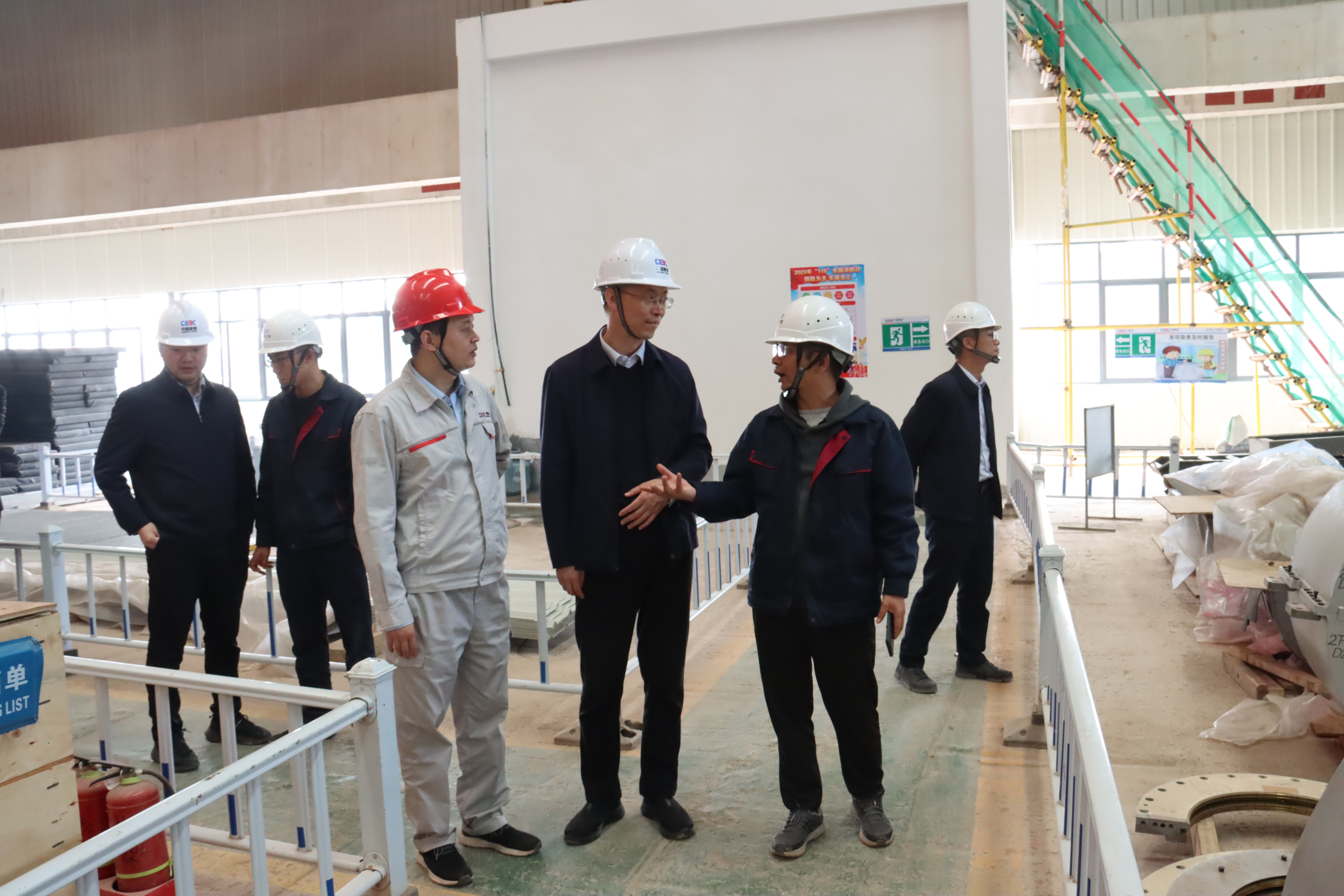 陈军来到项目主厂房区、集控室、升压站等点位,详细了解项目建设进度、节点计划安排,实地查看主机设备安装进度,并与资阳气电公司、EPC总承包项目部相关人员就设备供货事宜进行了座谈交流。