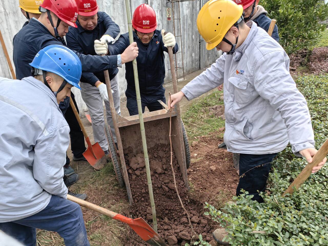 迎着和煦微风,踏着温润泥土,大家分工协作、配合默契,搬运树苗、挥锄挖土、扶苗填坑、挥锹培土、夯实土层、拎桶浇水,合力栽下一棵棵树苗,为站内增添了新的生机与活力,期待来年开花结果。
